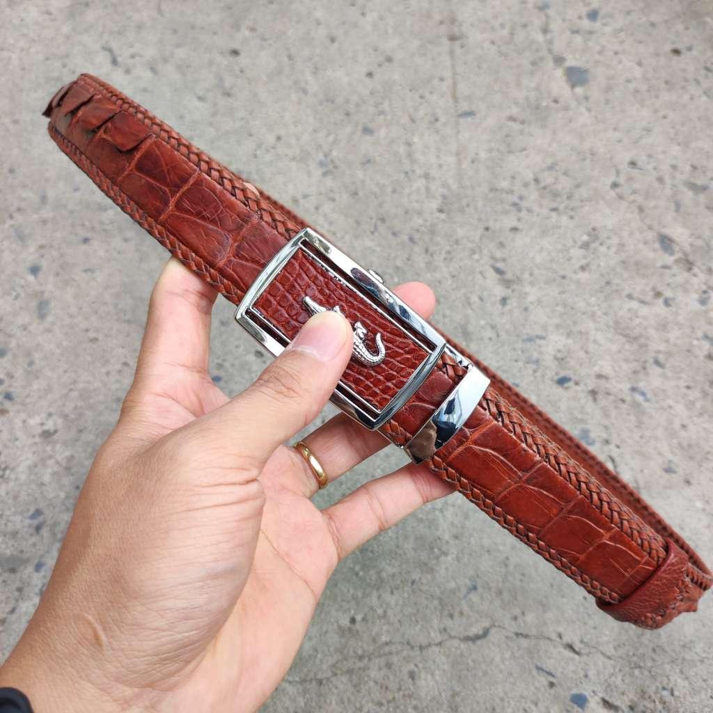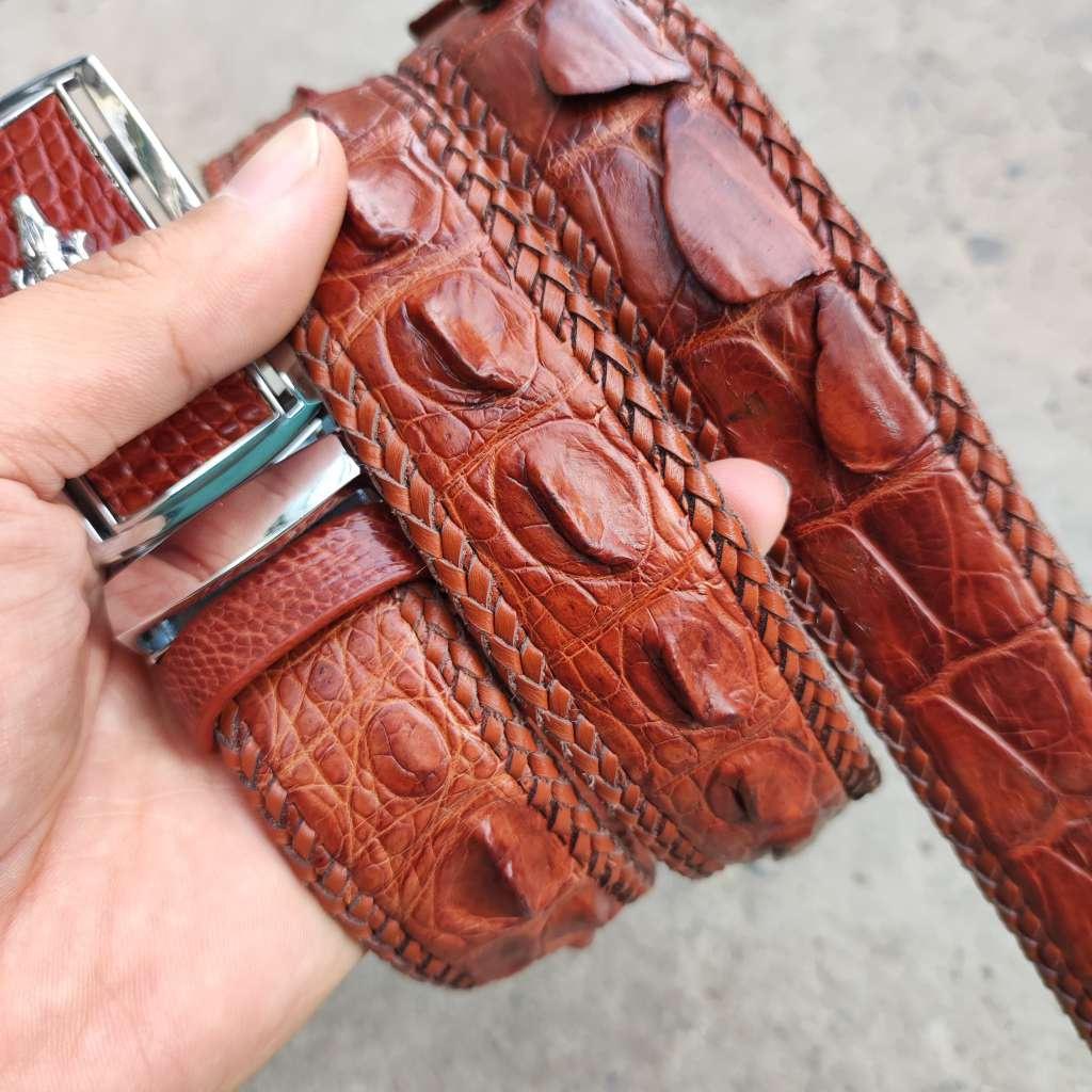 Dây lưng da cá sấu liền 1 miếng đan viền thủ công
