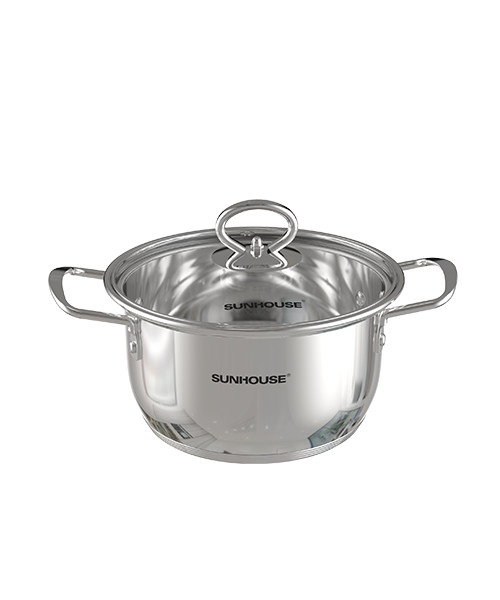 Nồi inox 5 đáy SUNHOUSE SHG788-16 sử dụng được với mọi loại bếp, kể cả bếp từ. Kích thước 16 cm thích hợp để luộc trứng, kho thịt và nấu lượng thức ăn nhỏ dành cho 1 – 2 người.