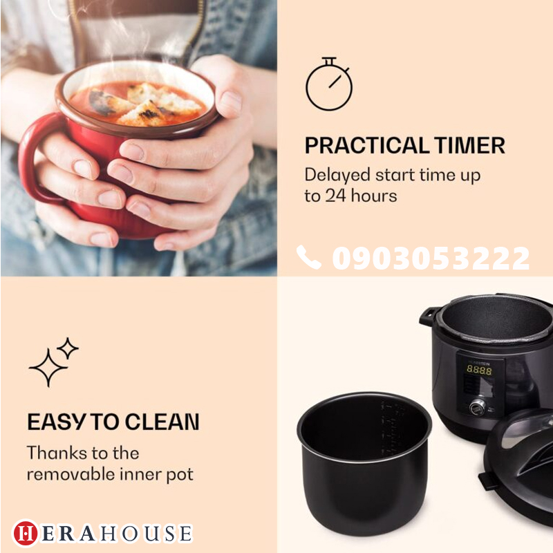 Đặc điểm nổi bật của Nồi áp suất điện đa năng Klarstein 4.8 lít Nhiều chức năng nấu: nấu nhanh, áp chảo và nấu chậm trong một. Bếp từ đa chức năng Quick Cook của Klarstein