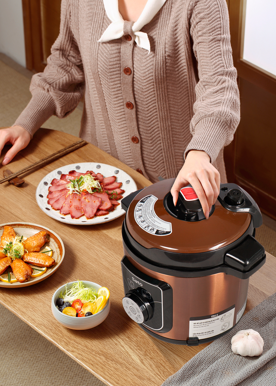 - Nồi áp suất đa chức năng : nấu cơm, nấu cháo, hầm gân, ninh, súp, hấp, giữ ấm