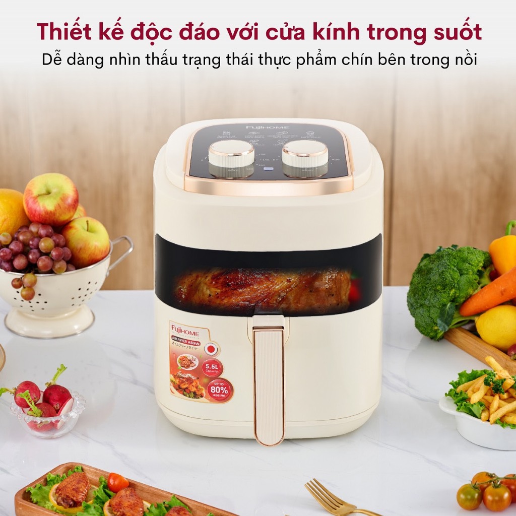 ✨Nồi chiên không dầu 5.5 Lít mặt kính nhập khẩu Nhật Bản Fujihome A5GW tự ngắt tiết kiệm điện, nồi chiên k dầu cơ 5.5 L chống dính cao - HÀNG CHÍNH HÃNG
