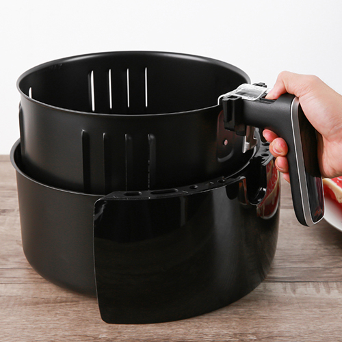 Trong quá trình nấu nướng, hoàn toàn có thể rút khay thực phâm ra kiểm tra xem thực phẩm đã chín tới hay chín giòn theo ý của mình. Khi rút khay thực phẩm, nồi chiên không dầu tự động ngắt điện. An toàn và yên tâm tuyệt đối.