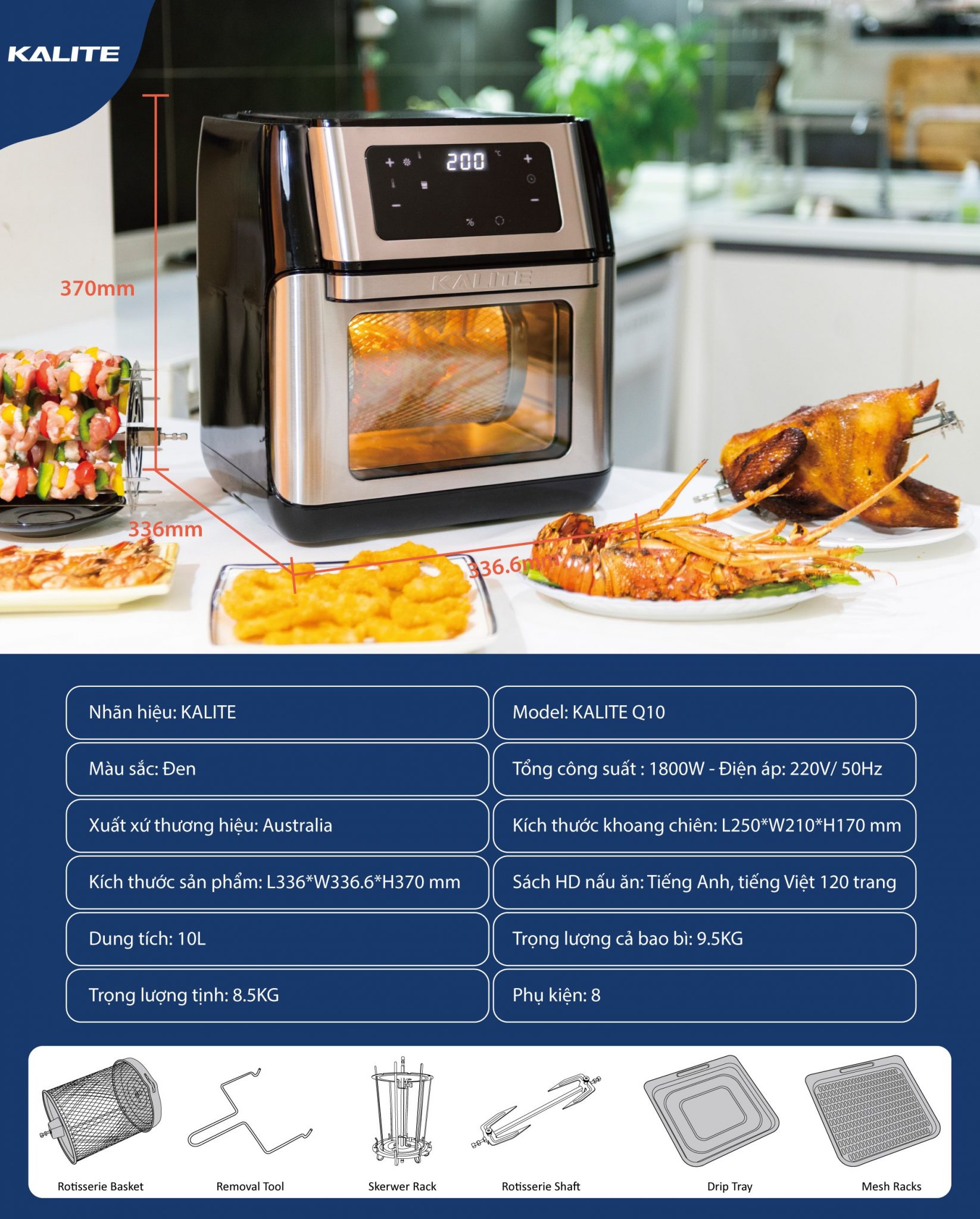 Nồi chiên không khí Kalite Q10 thế hệ mới là bước đột phá của công nghệ với sự kết hợp giữa nồi chiên không khí và lò nướng mang đến sự tiện lợi cho khách