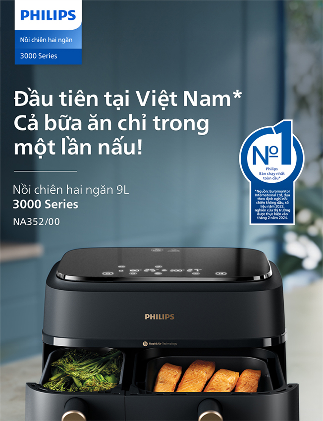 Nồi chiên không dầu Philips có dung tích tổng 9 lít với 2 ngăn riêng biệt