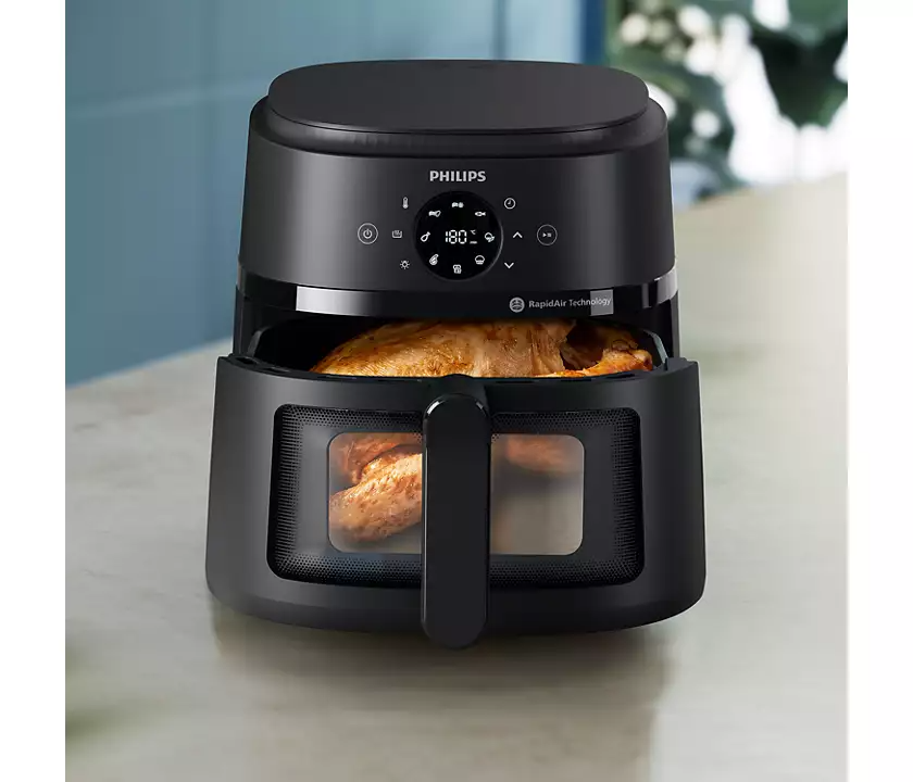 Nồi chiên không dầu Philips NA332/00 – Dung tích 6.2L, 10 chế độ nấu tự động ƯU ĐIỂM NỔI BẬT - Dung tích 6.2L rộng rãi Chiên gà nguyên con ~1.5kg hoặc nướng cùng lúc