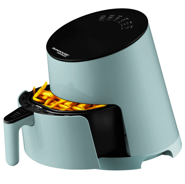 Nồi Chiên Không Dầu Sunhouse Mama SHD4085 có kiểu dáng độc đáo, nhỏ gọn. Sản phẩm có màu xanh ngọc sang trọng, lạ mắt, rất phù hợp với các không gian bếp hiện đại. Dung tích 3.5L cỡ vừa, phù hợp cho gia đình 2 – 4 người.