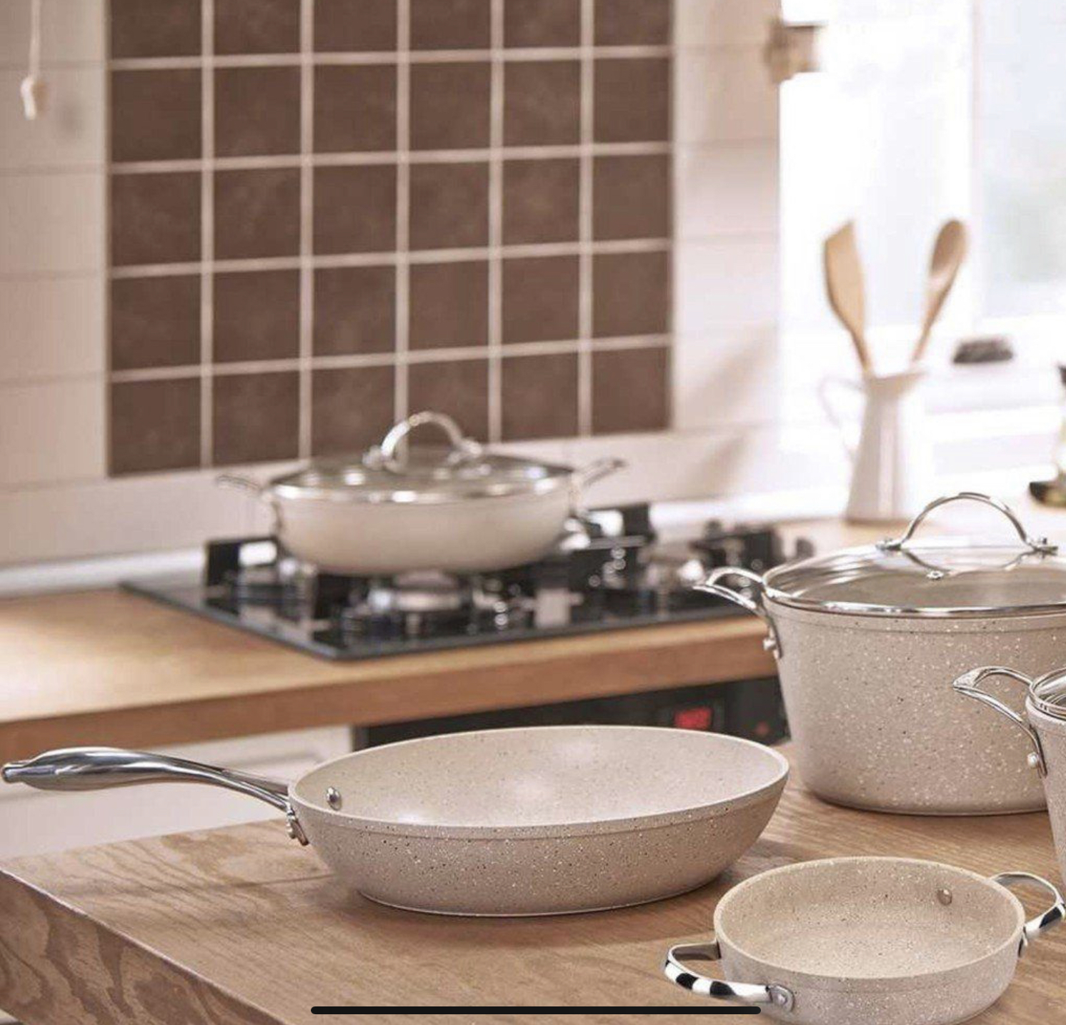 • Chảo chống dính Granita được đúc từ hợp kim nhôm nguyên khối, được kiểm soát gắt gao từ bước đầu tiên cho đến khi hoàn thành công đoạn sản xuất tại nhà máy Korkmaz đặt ở Thổ Nhĩ Kỳ.