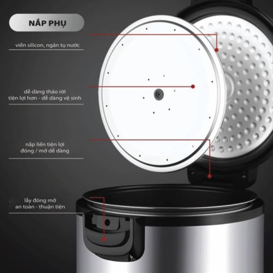 Nắp phụ ngăn tụ nước, giúp cơm chín đều ngon