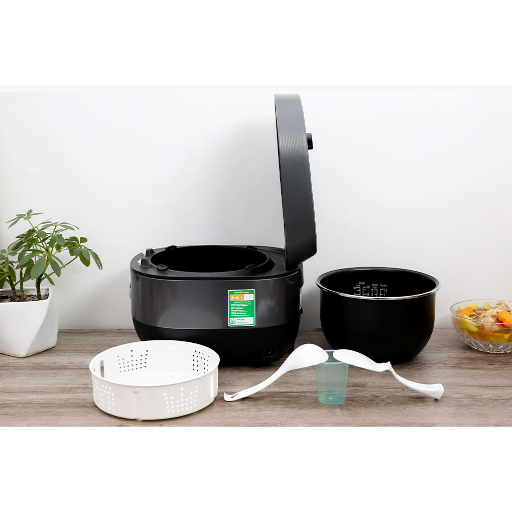 THÔNG SỐ KỸ THUẬT - Loại sản phẩm: Nồi cơm điện tử - Dung tích: 1.8 lít - Màu sắc: Đen - Chất liệu sản phẩm: Thép không gỉ - Điện năng tiêu thụ tổng: