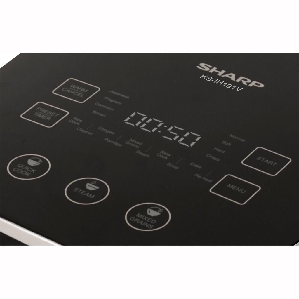 Nắp nồi cơm điện cao tần Sharp 1.8 lít KS-IH191V-BK được trang bị một đồng hồ thông minh hiện các thông số sắc nét giúp bạn dễ dàng theo dõi quá trình nấu và cài đặt giờ nấu linh hoạt. Bên cạnh đó còn được trang bị xửng hấp giúp bạn chế biến được nhiều món ăn.