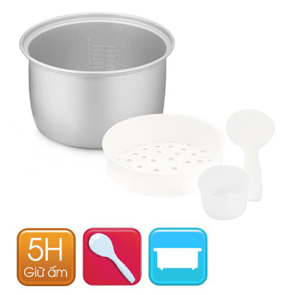 THÔNG TIN TIẾT - Điện áp: 220V - 50Hz - Công suất: 900W - Dung tích: 2.2L - Loại nồi cơm: Nồi nắp rời - Chất liệu lòng nồi: Hợp kim nhôm - Chống dính: