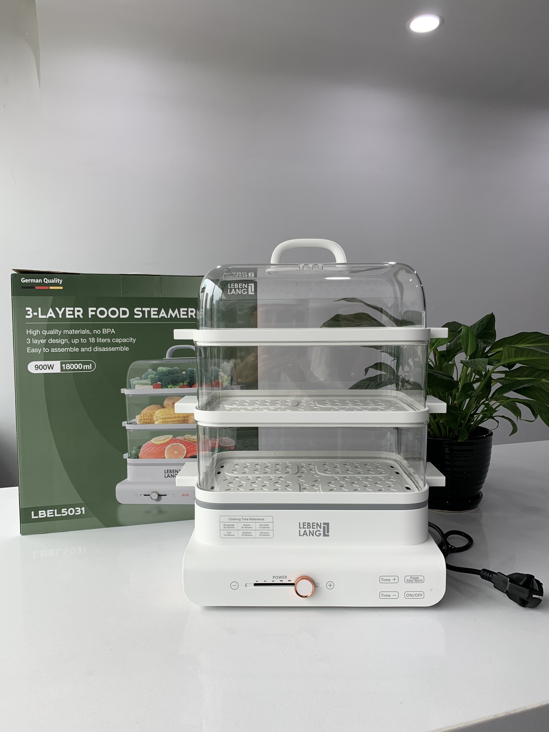 ✨Nồi hấp điện đa năng LEBENLANG LBEL5031 nồi hấp 3 tầng, siêu tiện lợi, dung tích 18L, công suất 900W - hàng chính hãng