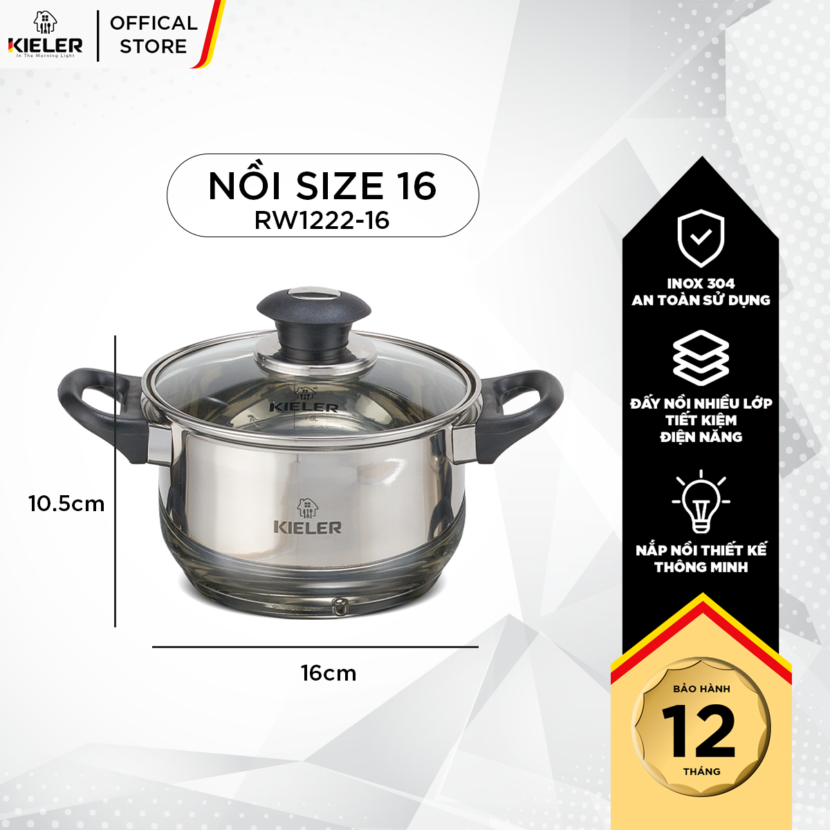 - Tên sản phẩm: Nồi Inox 5 đáy KIELER đáy từ 18cm nấu nhanh, tiết kiệm điện, có 2 lớp chống dính Whitford ít bám dầu mỡ RW1222-18 - Thương hiệu: Kieler - Model
