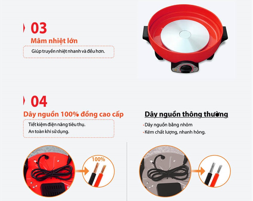 - Lẩu điện an toàn, tiện lợi dễ sử dụng, tiết kiệm điện