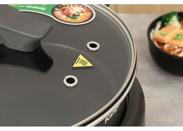 Nồi lẩu điện KGEH50N2 của Kangaroo có tay cầm chống nóng cách nhiệt tuyệt đối trong qua trình sử dụng bằng nhựa cao cấp an toàn. Vung kính chịu nhiệt trong suốt dễ quan sát thức ăn, có lỗ thoát khí chống tràn hiệu quả.