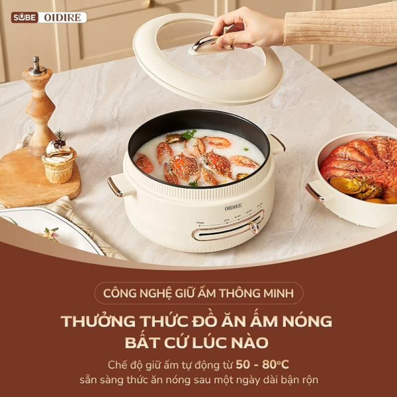 - Thưởng thức món ăn nóng hổi bất kỳ lúc nào: Khi món ăn đã chín, chế độ “Giữ ấm” giúp giữ nguyên hương vị và nhiệt độ mà không cần phải đun lại nhiều lần, tránh làm thay đổi chất lượng món ăn. Lưu ý: Nồi chỉ giữ ấm khi chưa rút dây cắm điện. Nếu muốn một chiếc nồi có các chức năng tương tự nhưng dung tích lớn hơn, bạn tham khảo nồi lẩu Bear SB-NL05F. Dung tích nồi 5L, thích hợp nấu cho 4-7 người. 6 đặc điểm nổi bật của nồi lẩu OIDIRE 4L ODI07A xứng đáng đầu tư Nồi lẩu OIDIRE 4L ODI07A là sản phẩm được thiết kế tối ưu cho nhu cầu nấu nướng hiện đại. Với 6 ưu điểm nổi bật, đây chắc chắn là lựa chọn đáng đầu tư cho mọi gia đình. Nấu lẩu sôi nhanh, không phải chờ đợi Nhanh chóng và tiện lợi là những cụm từ đúng nhất dùng để mô tả về nồi lẩu OIDIRE 4L ODI07A: