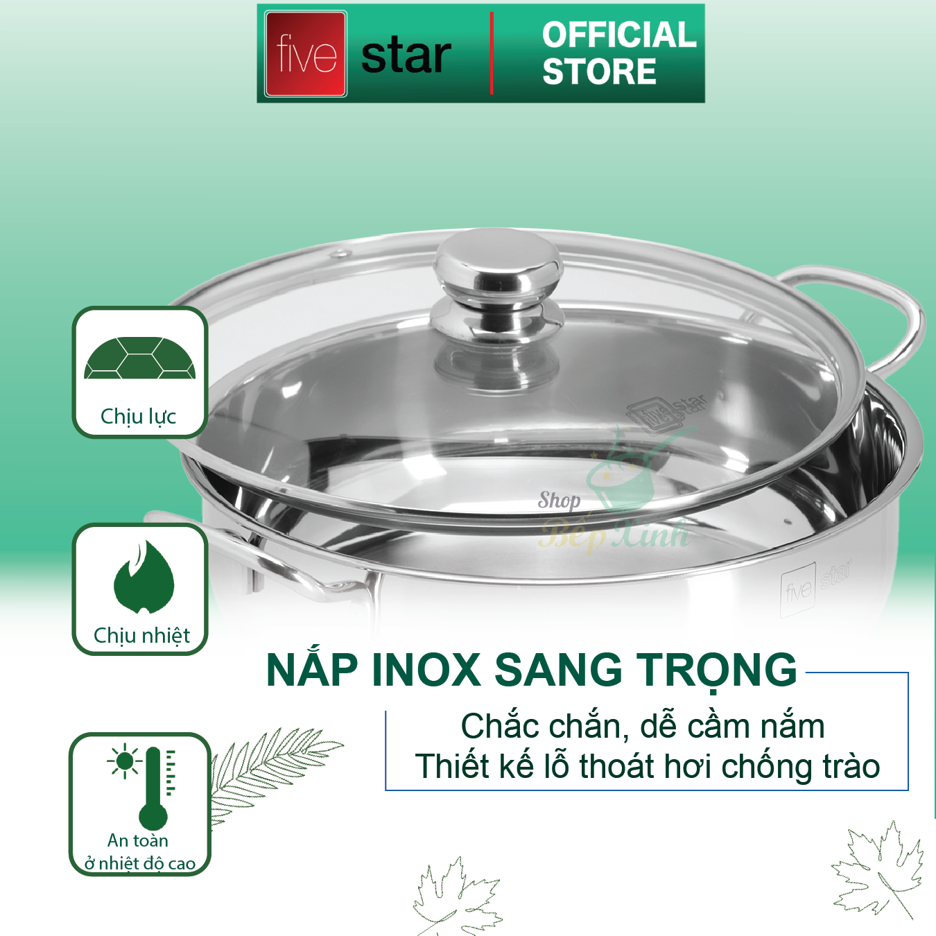 Bộ nồi xửng hấp Inox 3 đáy Fivestar 30cm bền đẹp, bảo hành 5 năm chuẩn hàng Việt Nam chất lượng cao