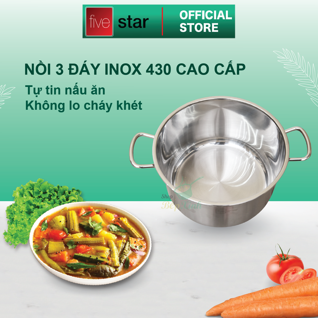 Nồi inox 3 đáy Fivestar FSN 24cm nắp inox đến từ thương hiệu Fivestar nổi tiếng Việt Nam, sản xuất tại Việt Nam. Nồi có thiết kế sang trọng với kích cỡ 24cm được làm từ chất liệu