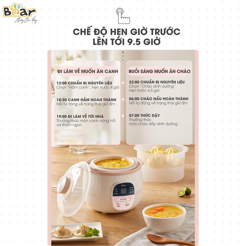 ✨Nồi Nấu Chậm 0,8L Bear Chính Hãng, Nấu Cháo, Hầm, Hấp, Chưng Yến Bản Quốc Tế - Hàng chính hãng