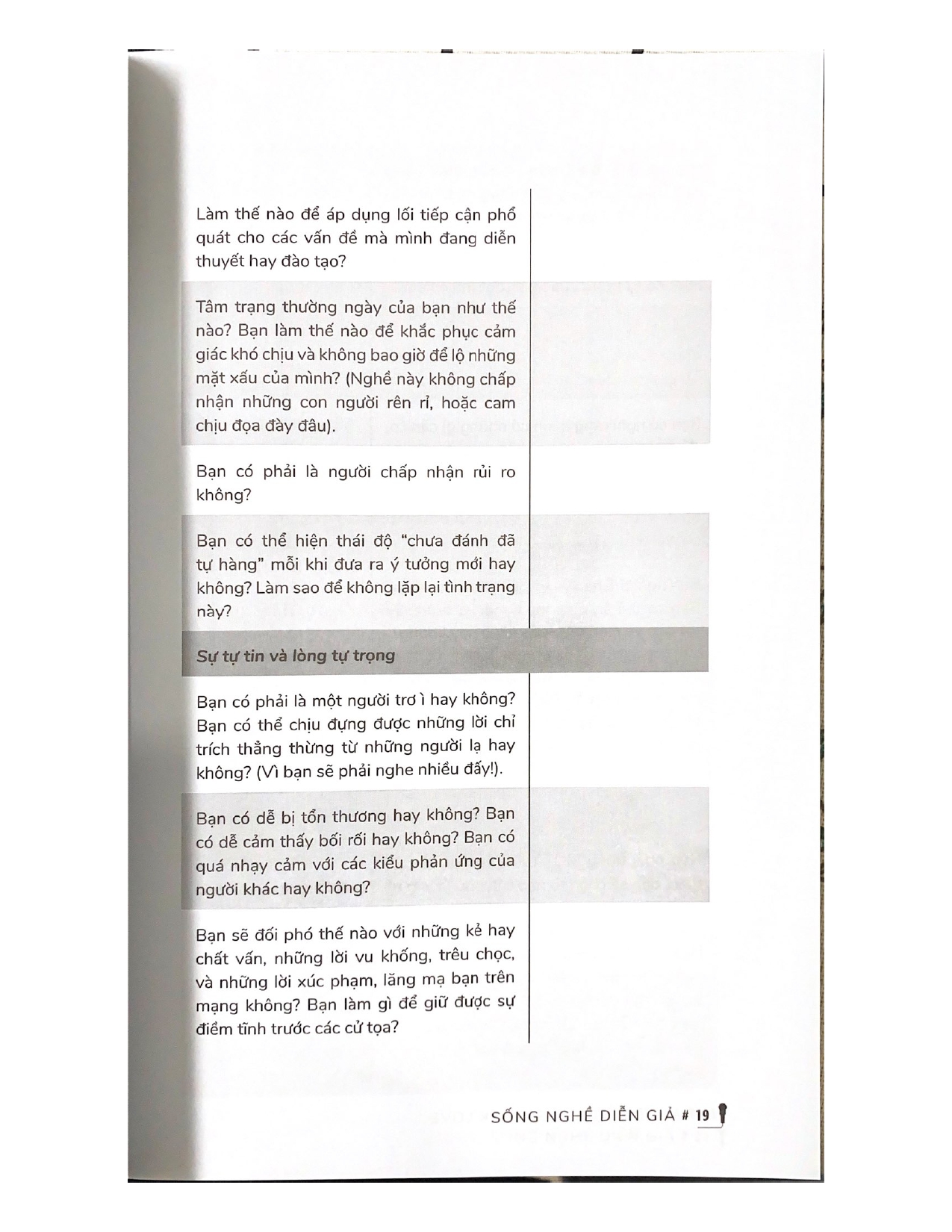 Là quyển sách đặc biệt, truyền tải giá trị và phong cách sống của một nghề mới, đang phổ biến trên trường quốc tế. Trong sách này, độc giả sẽ hiểu được tất tần tật những kinh nghiệm về nghề diễn thuyết, bao gồm các hoạt động liên quan đến nghề diễn thuyết (ở đây kiêm luôn cả nhà đào tạo), những kinh nghiệm thiết thực, cùng với những lời khuyên chân tình và giá trị.