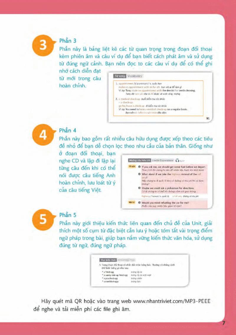 Sách có 11 chương về các chủ đề cần thiết như những hoạt động thường ngày, thói quen, sức khỏe, mua sắm, công việc, lễ Tết. Mục tiêu của sách là giúp bạn giao tiếp một cách lưu loát bằng tiếng Anh.