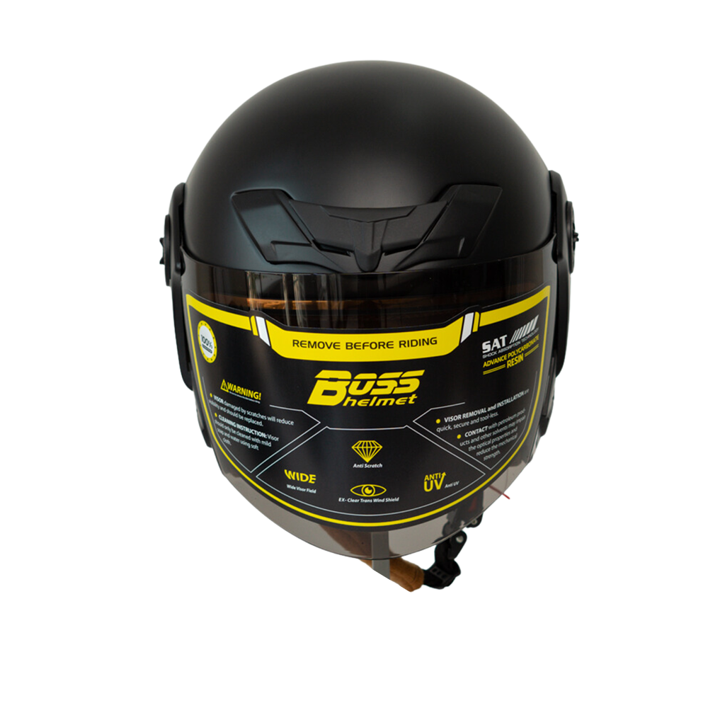 Nón Bảo Hiểm 3/4 Có Kính Moto BOSS AT22.1 Đa Dạng Màu Sắc THÔNG TIN CHI TIẾT Thương hiệu: BOSS HELMET Kích thước nón: 1 Size (phù hợp chu vi vòng đầu: 55-60cm) Cân nặng: 950±50gr Màu sắc: Đen Mờ, Nâu Socola Mờ. Kiểu mũ bảo hiểm: Mô tô/ Xe máy/ Mũ bảo hiểm & Phụ kiện Kiểu nón: Nón bảo hiểm che 3/4 đầu và tai, có kính chắn gió (dùng cho ánh sáng ban ngày) Loại bảo hành: Bảo hành nhà sản xuất 24 tháng Chất liệu: Nhựa ABS, Xốp EPS, Dây quai PP, Khóa Acetic Tên tổ chức chịu trách nhiệm bảo hành: An Tran Helmet MÔ TẢ SẢN PHẨM Nón Bảo Hiểm 3/4 Có Kính Moto BOSS AT22.1 được đánh giá là dòng nón bảo hiểm mang tính thể thao tập hợp đầy đủ các tính năng nổi trội: góc cạnh sắc xảo, các khe thông gió được thiết kế phù hợp với kiểu dáng cũng như duy trì được độ ổn định khi chạy xe ở tốc độ cao. Vỏ nón được làm từ nguyên liệu nhựa nguyên sinh ABS – đặc tính cứng rắn nhưng không giòn , loại