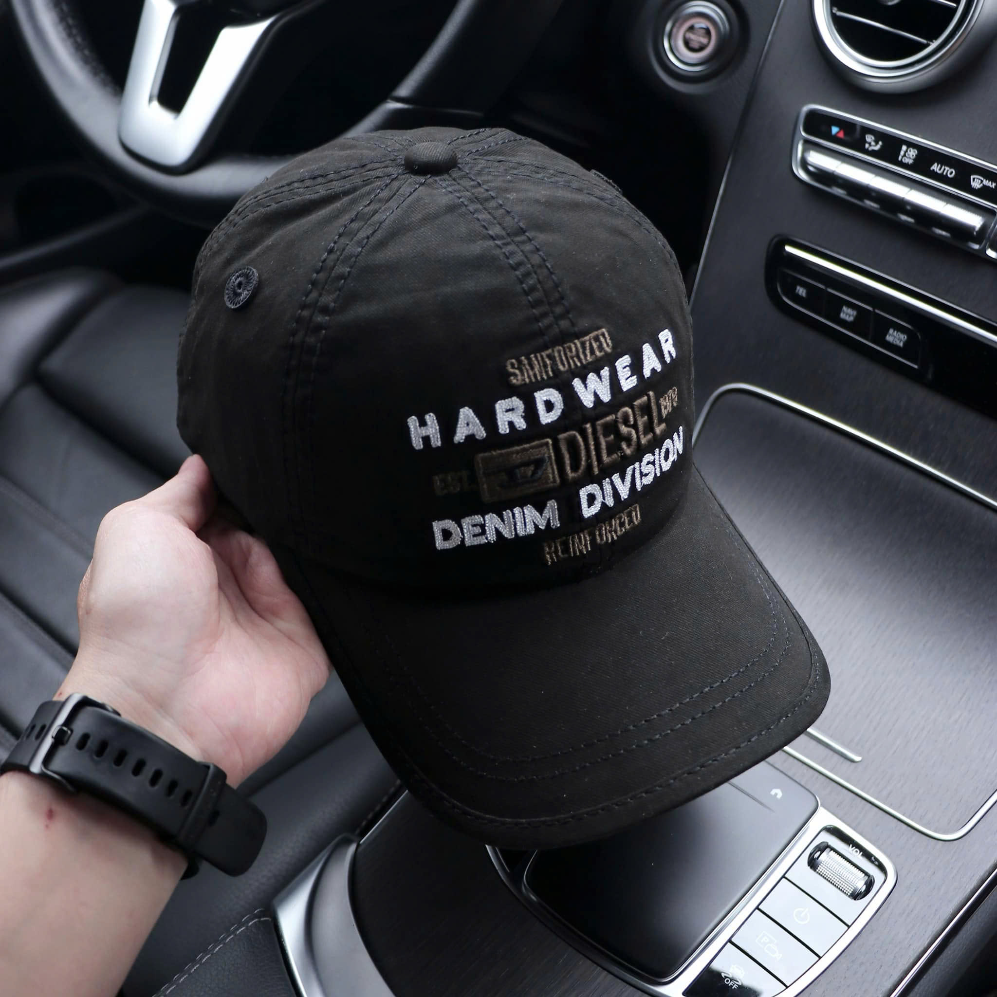 Nón kết, mũ lưỡi trai tem xe Mercedes vải Kaki đẹp form chuẩn ( Hàng VNXK)