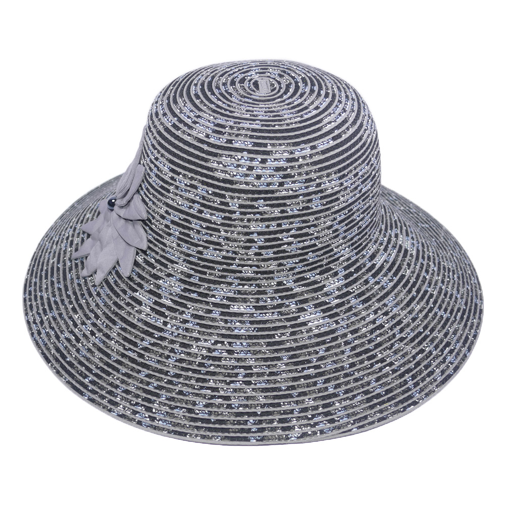 Nón đi biển mũ rộng vành chống nắng viền sọc phối đai ngọc trai nhân tạo 2 hoa trắng đen thời trang Hàn Quốc Chất liệu cói Kiểu dáng vành rộng Nón đi biển mũ