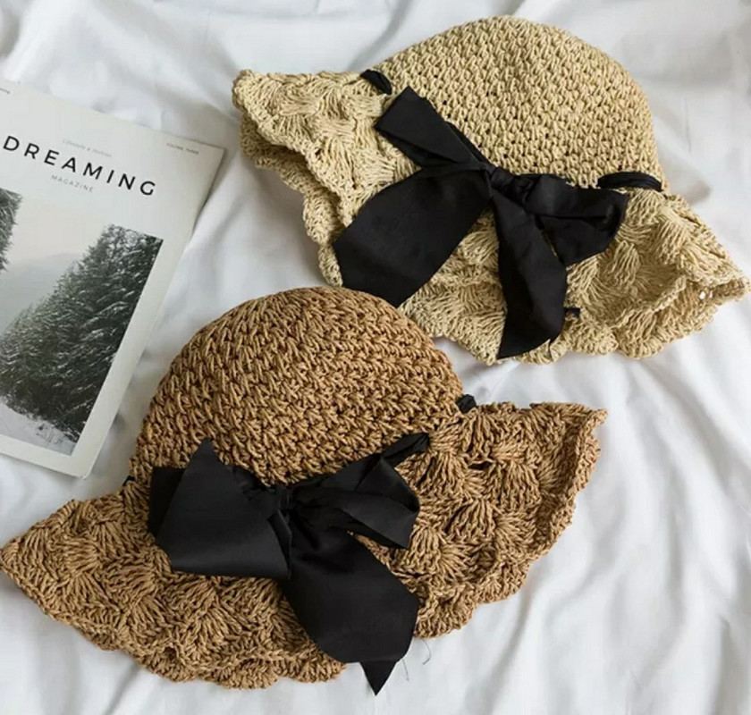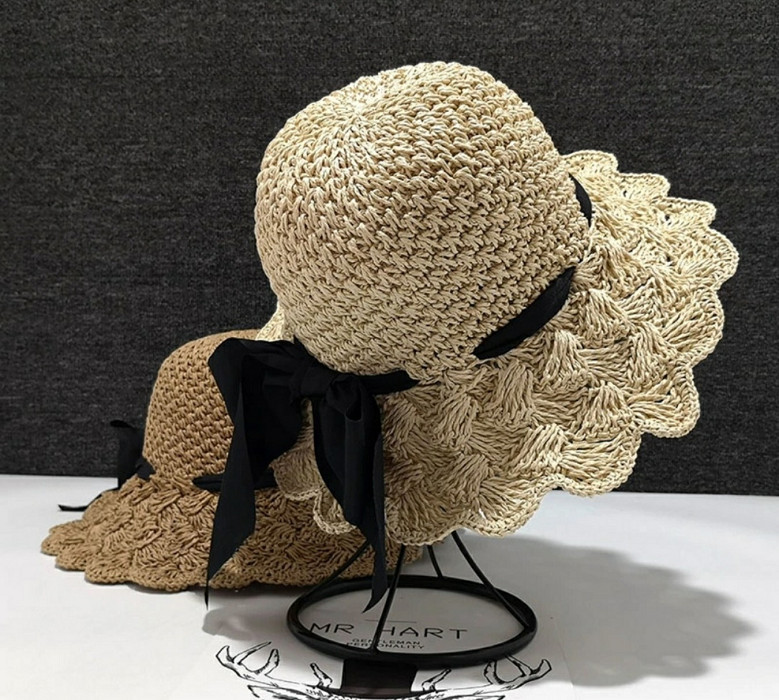 Nón mũ Nữ cói Dệt Móc Tay thoáng khí Có Thể Gập Đi Biển