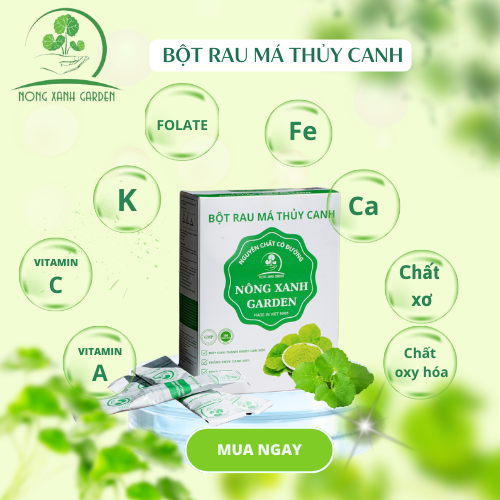 Hộp Bột Rau Má Thủy Canh Nguyên Chất Có Đường Nông Xanh Garden 45GR Tiếp nối sứ mệnh chăm sóc sức khỏe và sắc đẹp cho cộng đồng, Nông Xanh Garden cho ra mắt thêm dòng sản phẩm thực phẩm bổ sung Rau má thủy canh nguyên chất có đường được kết hợp hài hòa giữa hương vị ngọt thanh của đường cỏ ngọt với 100% nguyên liệu rau má thủy canh tươi được làm sạch bằng phương pháp sục Ozone kết hợp kỹ thuật sấy lạnh và công nghệ nghiền cối đá siêu mịn từ Nhật Bản nên giữ nguyên vẹn được giá trị dinh dưỡng của rau má nguyên chất.