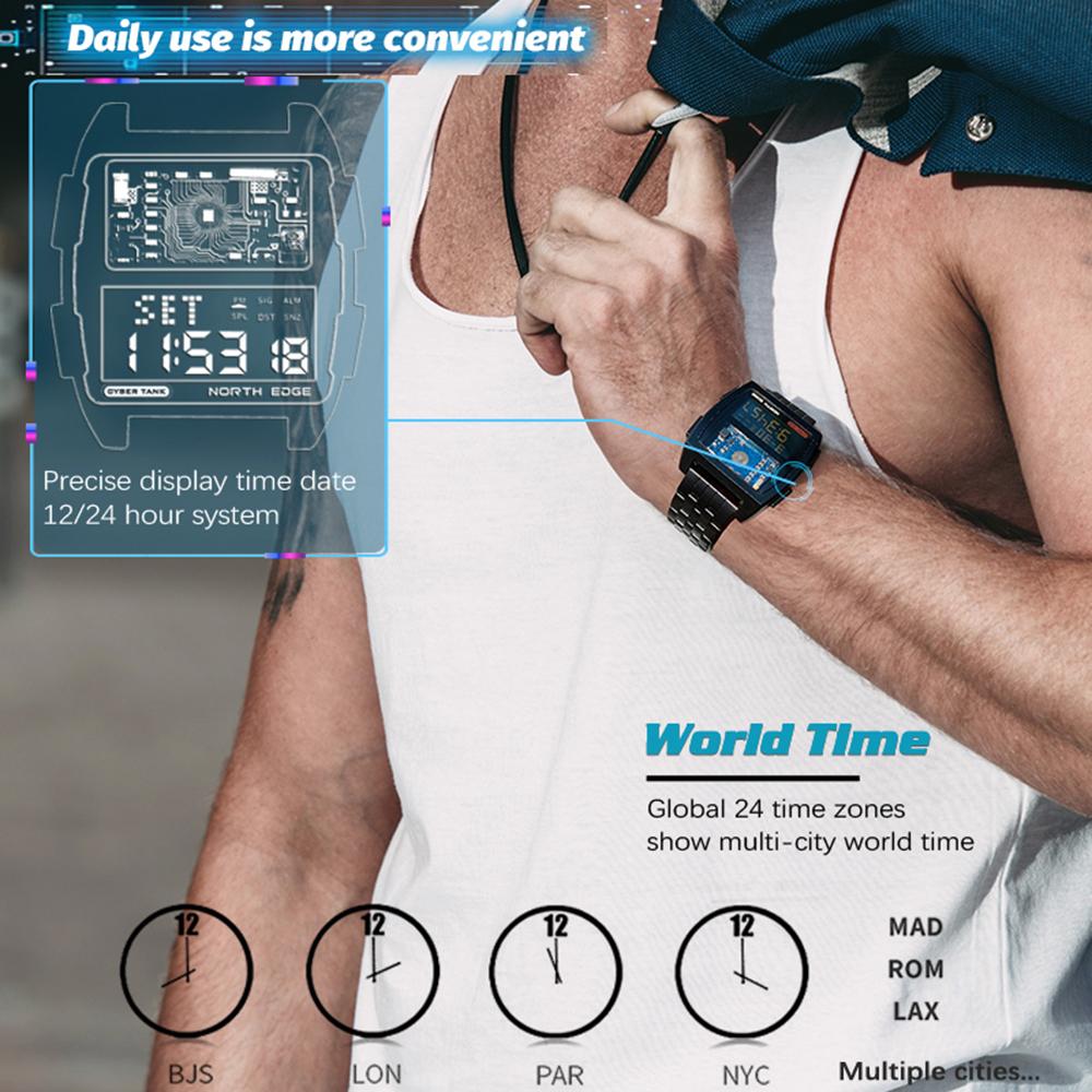 Unique men's sports watch with pedometer, calories counter, distance tracker and running time record, perfect for both outdoor and indoor sports, such as running, climbing, fishing. Features: Multifunctional watch: Pedometer, Calories counter, distance tracker, running