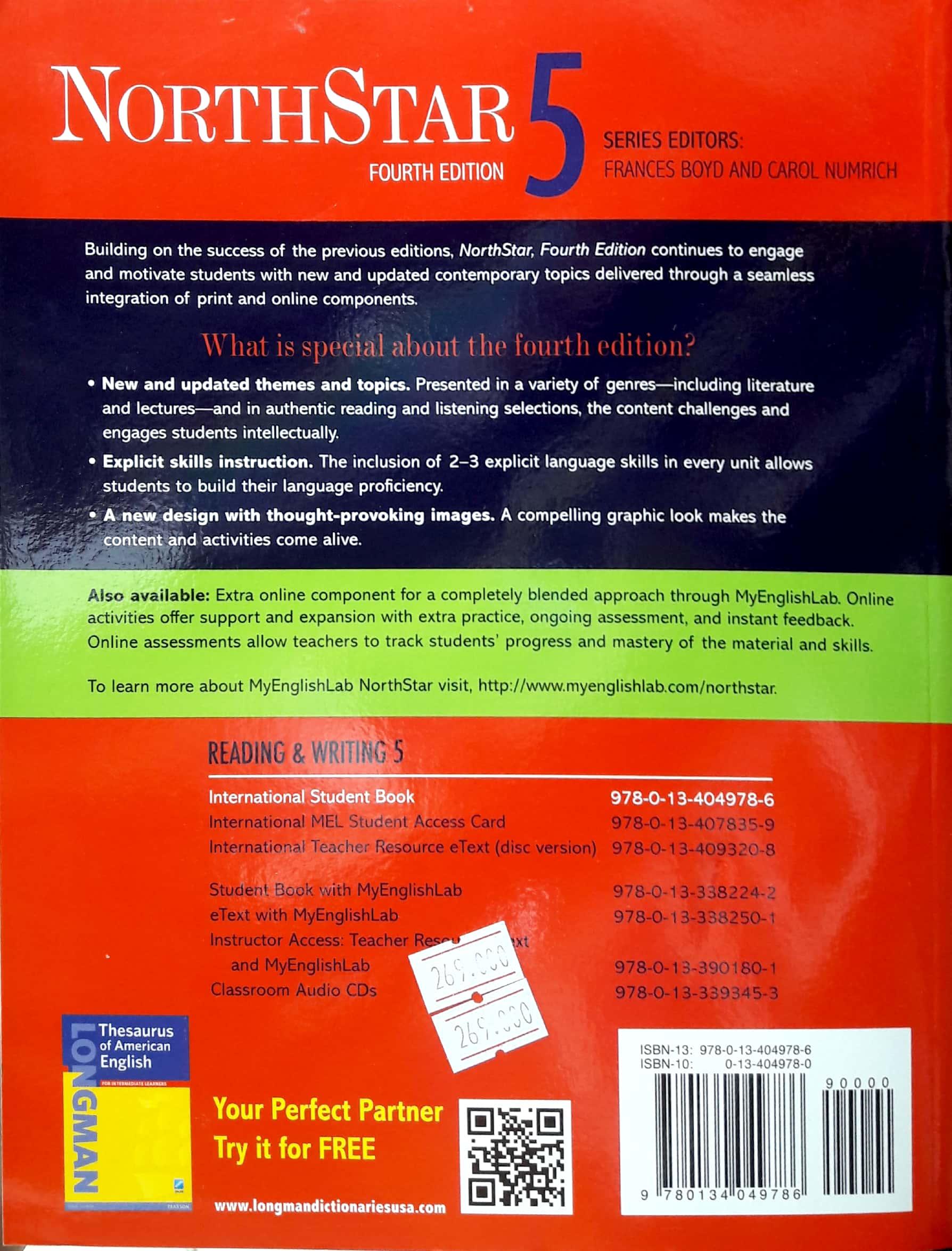 Mua tại TiktokNorthStar Fourth Edition, a five-level series, engages students through authentic and compelling content and empowers them to achieve their academic and personal goals. The approach to critical thinking in both the Reading/Writing and Listening/Speaking strands challenges students to move beyond basic comprehension to higher level analysis. Conceptualized to promote critical thinking, NorthStar infuses analysis, synthesis, evaluation, and application throughout every lesson, not just in a critical thinking section like in other series.