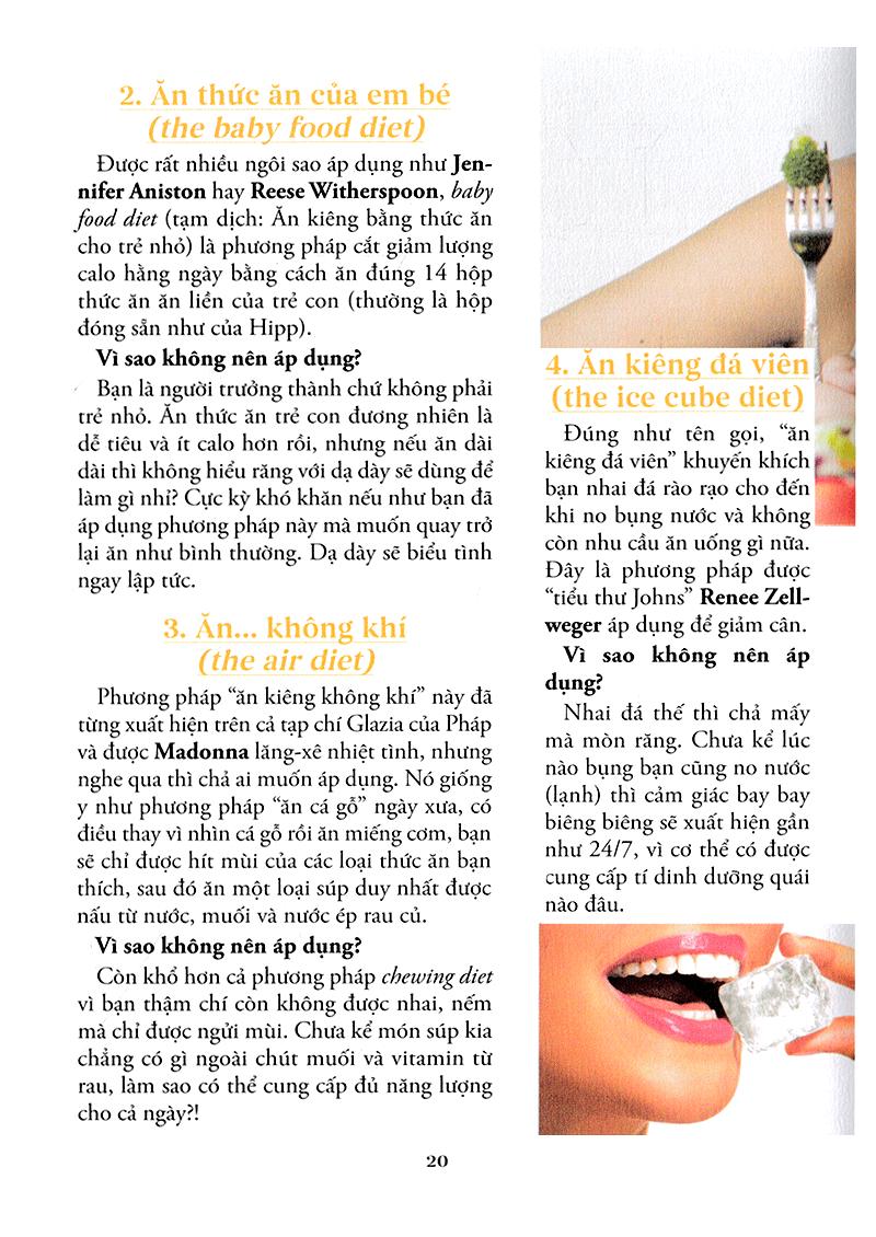 Nữ Thần Bãi Biển Ước mơ lớn nhất của con gái là gì? Là được crush của mình thích lại? Là được đi du lịch khắp nơi? Là kiếm được thật nhiều tiền? Sai rồi. Ước mơ của 98% phụ nữ trên đời này là được ăn cả thế giới mà không béo! Nhưng ước mơ chỉ là mơ ước, bởi chỉ có vỏn vẹn 2% phụ nữ được ban cho đặc ân “ăn hoài mà không lên cân”, chứ còn đa số còn lại chỉ cần uống xong cốc nước lọc hay trót liếc nhìn cái bánh cupcake thôi cũng đã thấy quần chật thêm một ít! Bi kịch bắt đầu trở nên rõ ràng hơn khi mùa Hè đến, khi không còn những chiếc áo khoác dày cộp, những cái áo len to sù sụ giấu đi lớp mỡ dày bịch ở bụng hay đùi nữa. Thế là phụ nữ là đau đầu chọn lựa xem Hè này mình sẽ ăn ngon hay nhìn “ngon”, và phần lớn câu chuyện sẽ bắt đầu theo kiểu: Nhất định mùa Hè này mình sẽ có thân hình bikini bốc lửa thiêu đốt mọi ánh nhìn, mình sẽ giảm cân, tập tành tử tế, ăn kiêng từ bây giờ!!! quyết tâm ngùn ngụt Để rồi hai tháng sau, vẫn thấy cân nặng nằm im một chỗ, đồ tập tủi thân đắp đống ở góc phòng, còn nàng vẫn rồn rột hút trà sữa và tự nhủ “Thôi để tuần sau bắt đầu lại!”. Kết quả là trước Hè, mục tiêu của nàng là giảm được 5 kg. Sau Hè, nàng lại thầm nhủ “Cố lên, chỉ cần giảm… 8 kg nữa thôi là đạt được số cân mơ ước rồi!”. Thế còn buồn không cơ chứ?! Những bộ đồ mua để gầy-rồi-mặc vì thế cứ vĩnh viễn bị treo ở trong tủ hết mùa này đến mùa khác. Và con gái vẫn cứ vật lộn với câu hỏi “Làm sao để mùa Hè không béo?”. Đã đến lúc thay đổi rồi! Với cẩm nang này, ước mơ trở thành một nữ thần thiêu đốt mọi ánh nhìn ở bãi biển hay ở bất cứ đâu trong mùa Hè này sẽ không còn là điệp vụ bất khả thi. Với những “chiến lược” giảm cân, ăn kiêng khoa học, rõ ràng và chứng minh được tính hiệu quả, chắc chắn nàng sẽ có thêm quyết tâm trên con đường tìm lại vòng eo mơ ước. Bên cạnh những cách ăn kiêng khoa học và có tính khả thi cao như ăn kiêng kiểu Địa Trung Hải, paleo, pegan hay cân bằng kiềm, cuốn cẩm nang còn “bỏ nhỏ” cho nàng rất nhiều bí kíp tập tành, dựng style thời trang mùa Hè du lịch, chăm sóc da và trang điểm để có được phần ngoài thu hút nhất được chia sẻ bởi những hot beauty blogger và fashionista như Hana Giang Anh, Daul Be hay Julia Đoàn. Ăn ngon hay trông “ngon” sẽ không còn là câu hỏi khiến nàng phải “ong thủ” nữa bởi với cuốn cẩm nang kì diệu này, nàng có thể vừa ăn ngon, vừa có một phần nhìn vẫn quyến rũ và vừa vặn vô cùng. Tất cả là bởi những bí kíp ăn uống sao cho đúng chuẩn, những “luật lệ” của một chế độ dinh dưỡng hợp lí và một lối sống lành mạnh cùng những gợi ý tập tành vô cùng hấp dẫn bởi tập mà như không tập! Mùa Hè này bạn muốn điều gì? Để người khác phải ghen tị với thân hình của mình, hay mình ghen tị với thân hình của người khác? Nếu muốn điều thứ nhất, thì tất cả những gì bạn cần chính là cuốn sách “NỮ THẦN BÃI BIỂN” này, cộng với sự quyết tâm và kiên trì của bản thân. Đừng quên với phụ nữ, đẹp vừa là quyền, vừa là nghĩa vụ. Và khi đã có động lực để buộc-mình-phải-đẹp, phụ nữ sẽ làm được điều đó, bằng mọi giá. Hãy biến cơ thể bạn thành bộ quần áo quyến rũ nhất mà bạn có đi nào!