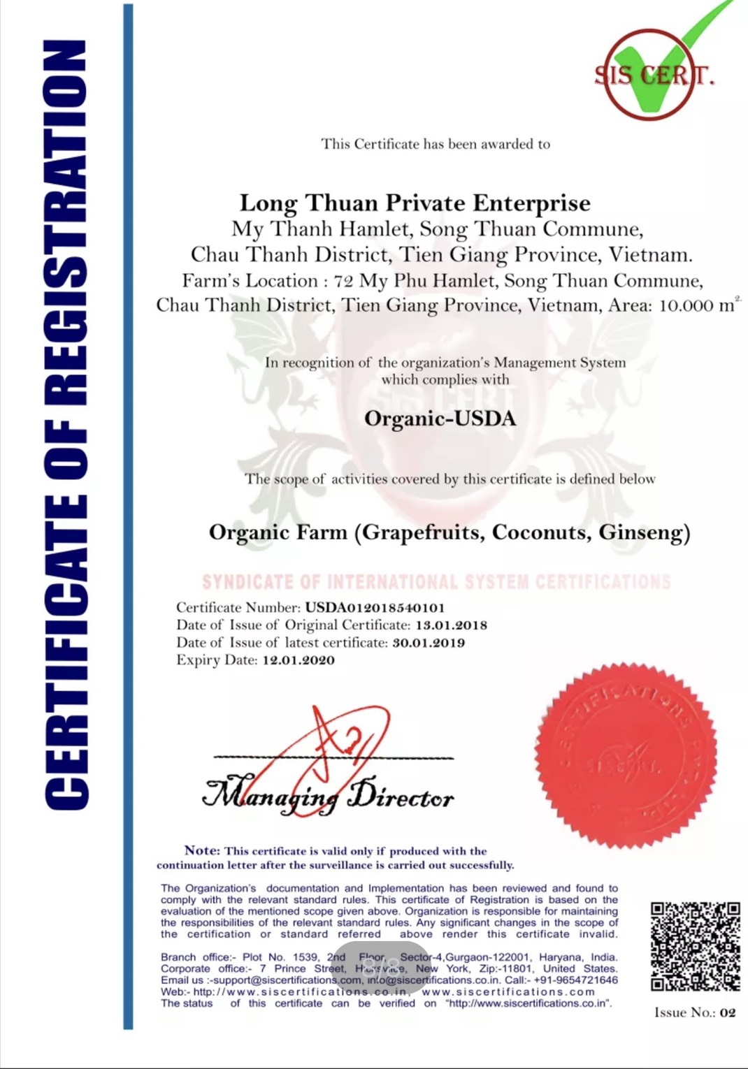 - Sản phẩm đóng gói: 01 chai. ☞ Tiêu chuẩn sản xuất: Theo Chứng nhận TCSP do sở y tế Tiền Giang cấp