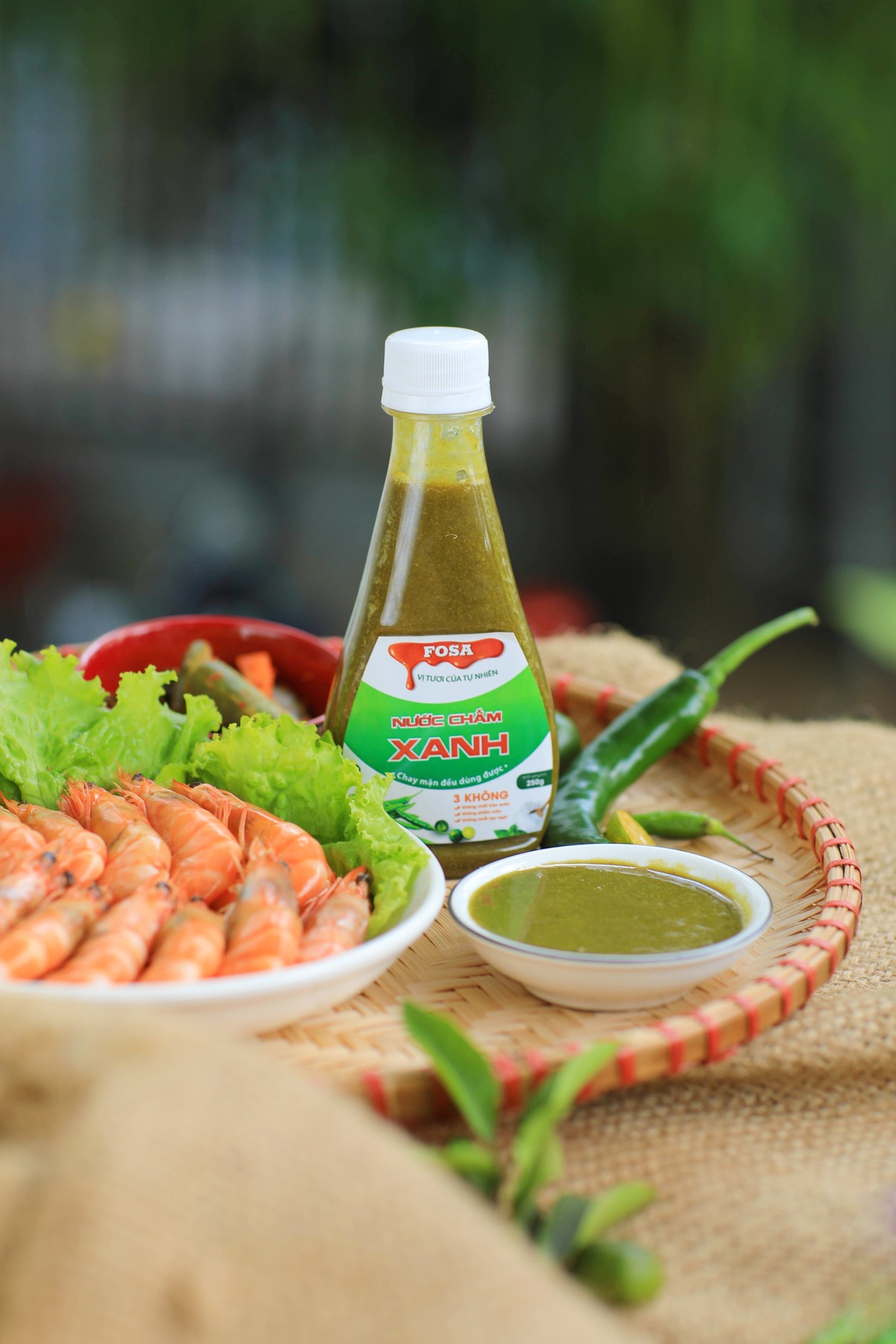 Nước chấm Xanh Fosa: Hương vị cay nồng đặc trưng của những trái ớt xiêm sẽ đem lại cho bạn trải nghiệm ẩm thực tuyệt vời. Chấm Xanh phù hợp khi dùng để chấm hải