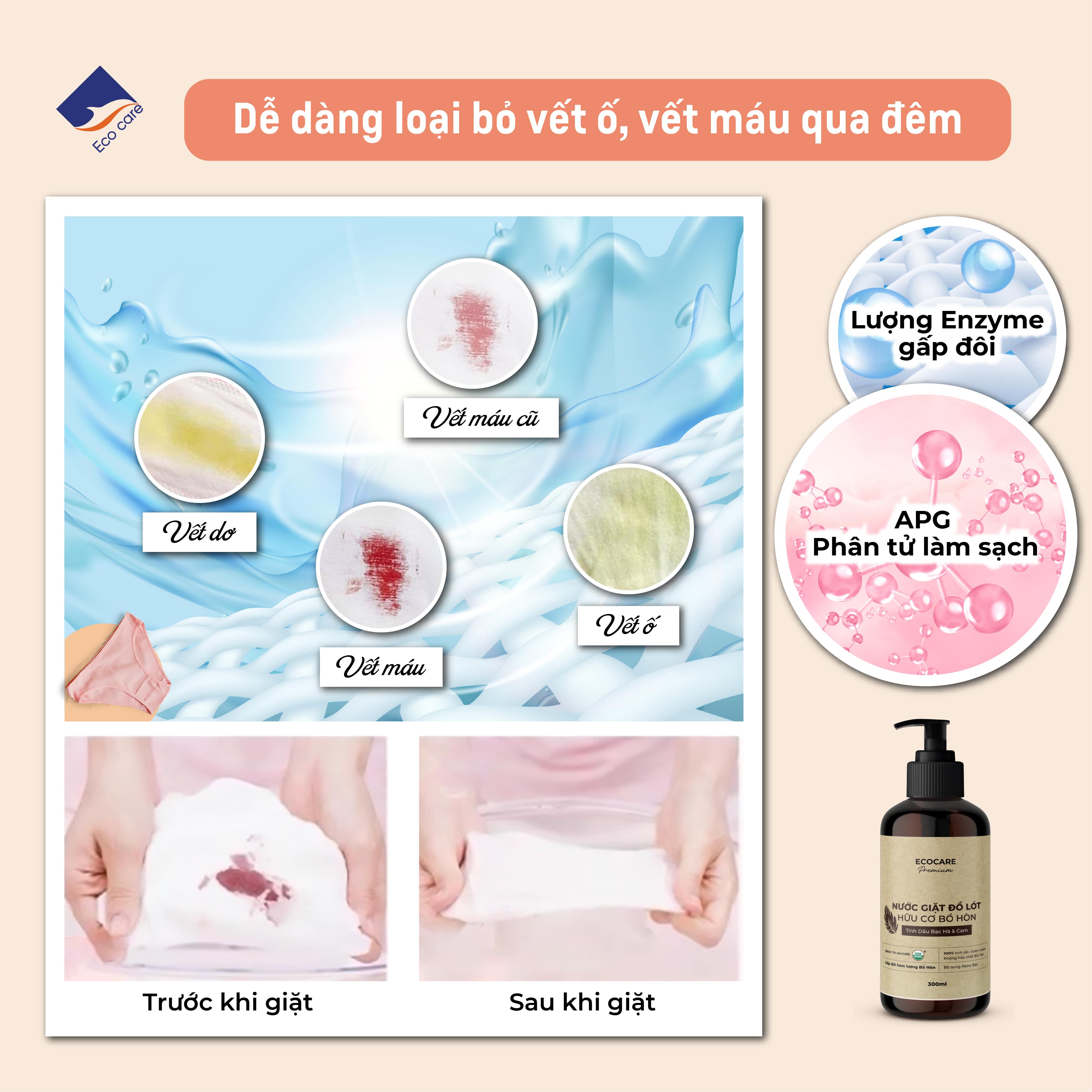 ✨Nước Giặt Đồ Lót Hữu Cơ ECOCARE 300ml Giảm 99% Vi Khuẩn, Tẩy Ố Hiệu Quả, Hương Cam Bạc Hà Thơm Mát