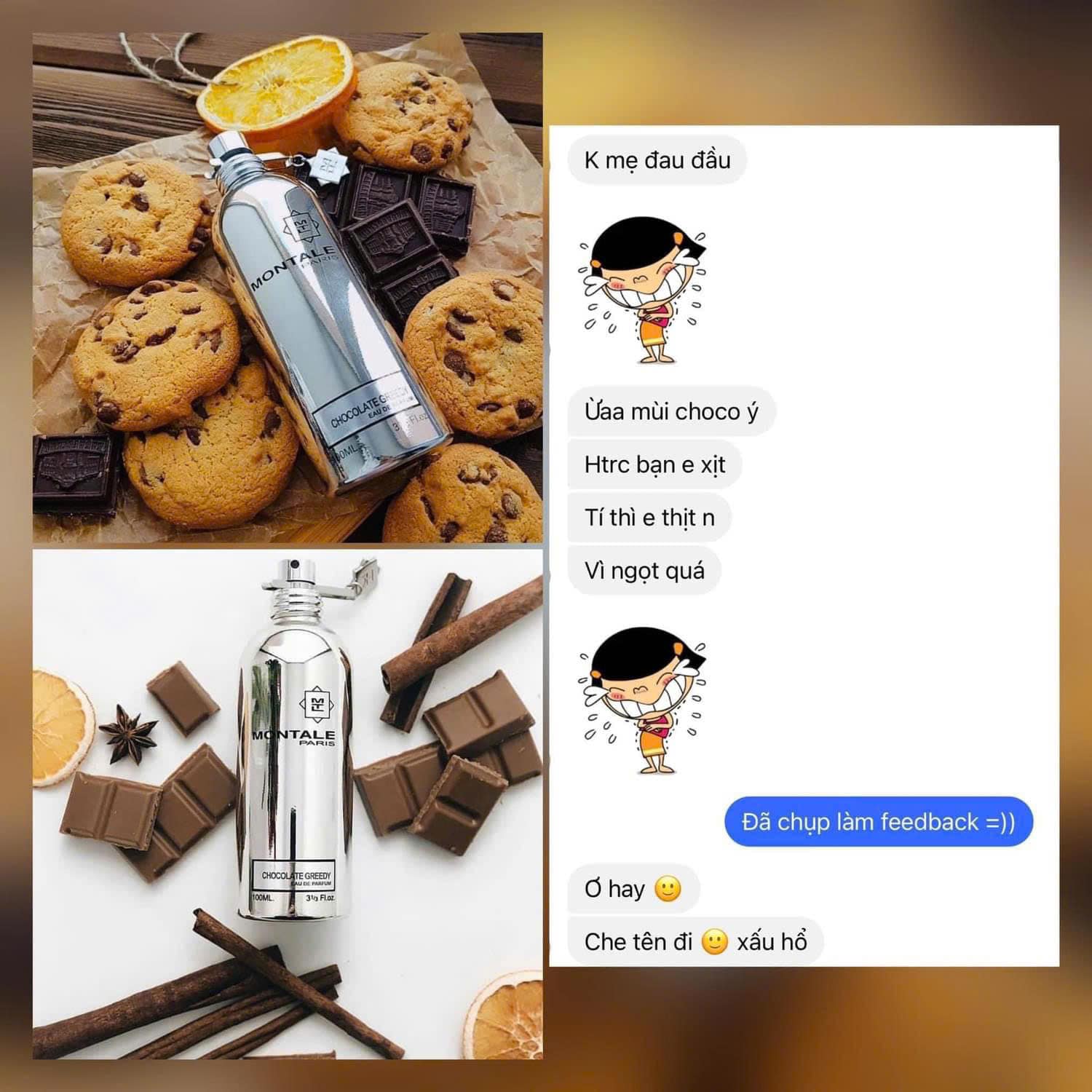 Nếu như mang Montale Chocolate Greedy đến mũi để ngửi thử, có vẻ như mùi hương hơi khó chịu sẽ lẩn quẩn quanh xung quanh khứu giác, hãy xịt lên da vài giọt Montale Chocolate Greedy để đắm chìm thật sự trong mùi hương socola – quả hạch đầy ngọt ngào và lôi cuôn, và cũng không có gì quá ngạc nhiên khi một ai đó sẽ cắn tay bạn vì từ lan da bạn đang toát ra làn hương giống như kẹo ngọt, Montale Chocolate Greedy sẽ là một sự hấp dẫn không thể chối từ cho những ai là fan của thế giới bánh ngọt.