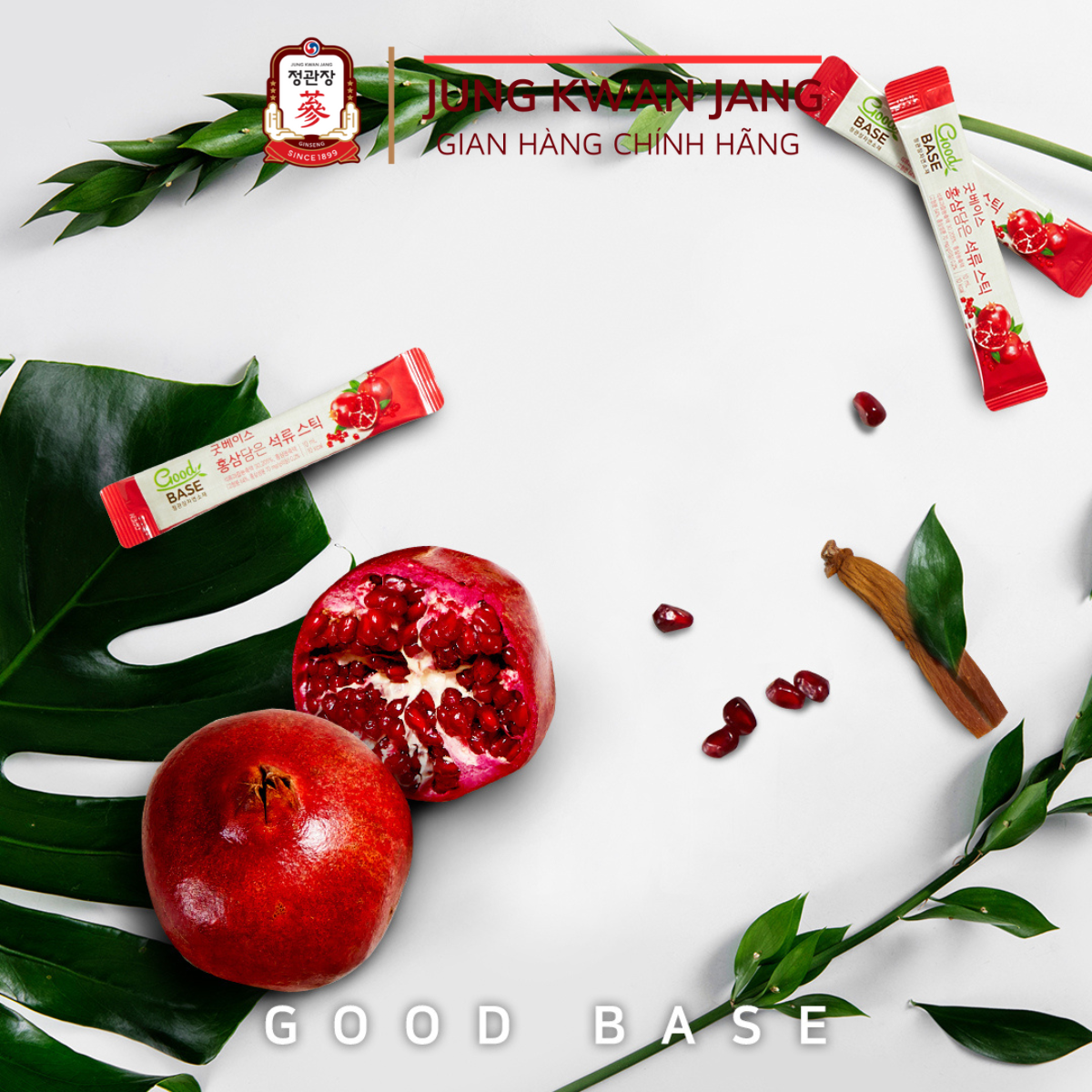 - Ra mắt lần đầu tiên vào năm 2010 tại Hàn Quốc, Good BASE nhanh chóng được ưu chuộng rộng rãi vì hương vị thơm ngon, giúp hệ miễn dịch luôn duy trì ở mức cao nhất, tăng cường lưu thông máu, giảm mệt mỏi, chống oxy hóa, cùng nhiều công dụng chăm sóc sắc đẹp. KGC JUNG KWAN JANG: