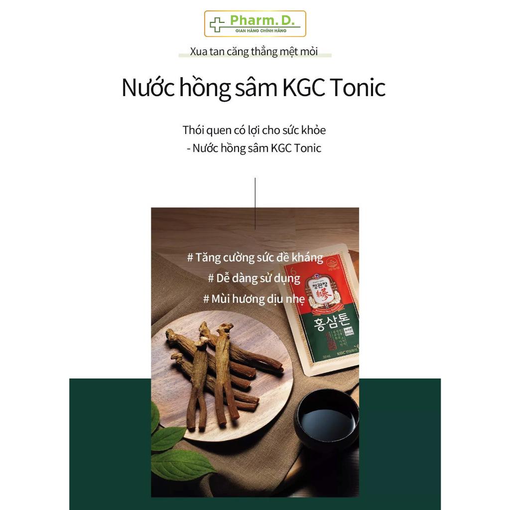 - Nước hồng sâm Tonic là loại thuốc bổ thảo dược phổ biến và nhẹ của tập đoàn hồng sâm chính phủ Hàn Quốc KGC.