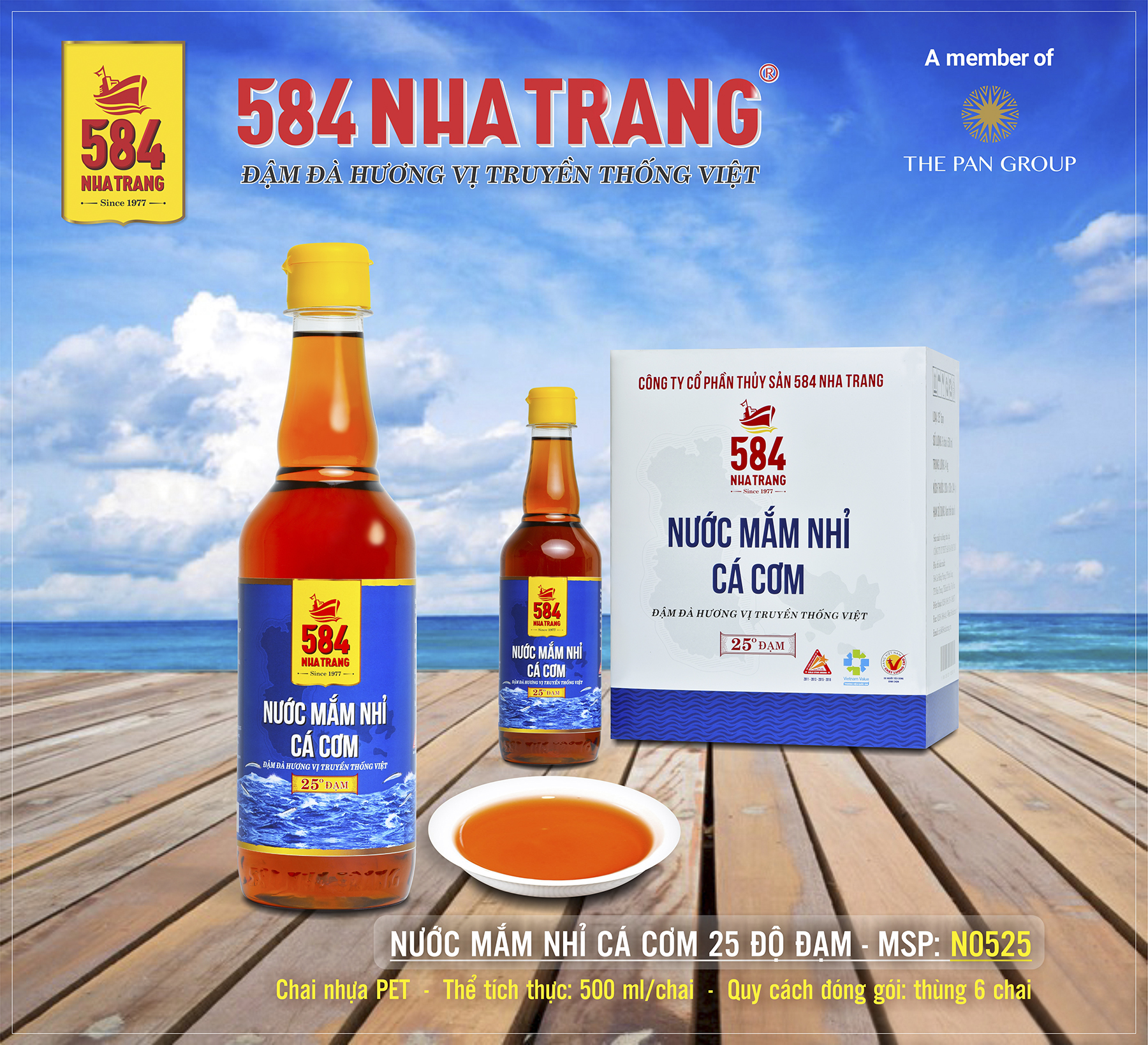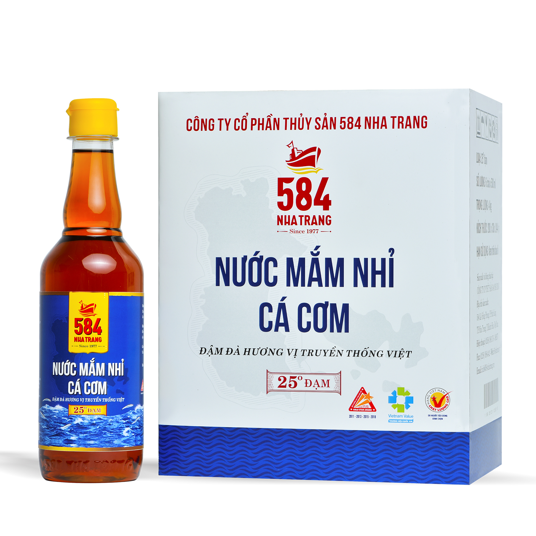 NƯỚC MẮM 584 NHA TRANG – ĐẬM ĐÀ VỊ TRUYỀN THỐNG - Thành phần tự nhiên: Cá cơm tươi, Muối tinh sạch - Chỉ tiêu chất lượng: Độ đạm: 20g/l, 25g/l (tùy loại sản phẩm)