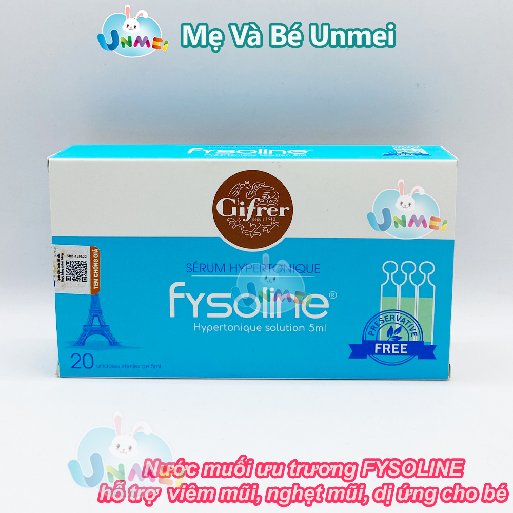 Mua tại TiktokNước muối ưu trương FYSOLINE hỗ trợ viêm mũi, nghẹt mũi, dị ứng cho bé (Hộp xanh 20 ống x 5ml) Nước muối sinh lý Pháp Kháng khuẩn hỗ trợ viêm mũi, nghẹt mũi cho bé