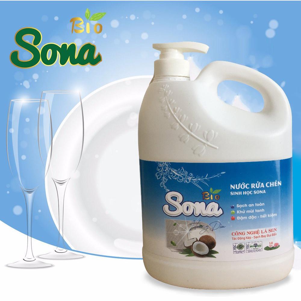 Nước rửa chén/bát sinh học SONA 1.6kg nước rửa bát hữu cơ hương Dừa, hương quế sạch siêu tốc tiết kiệm nước không hại da tay