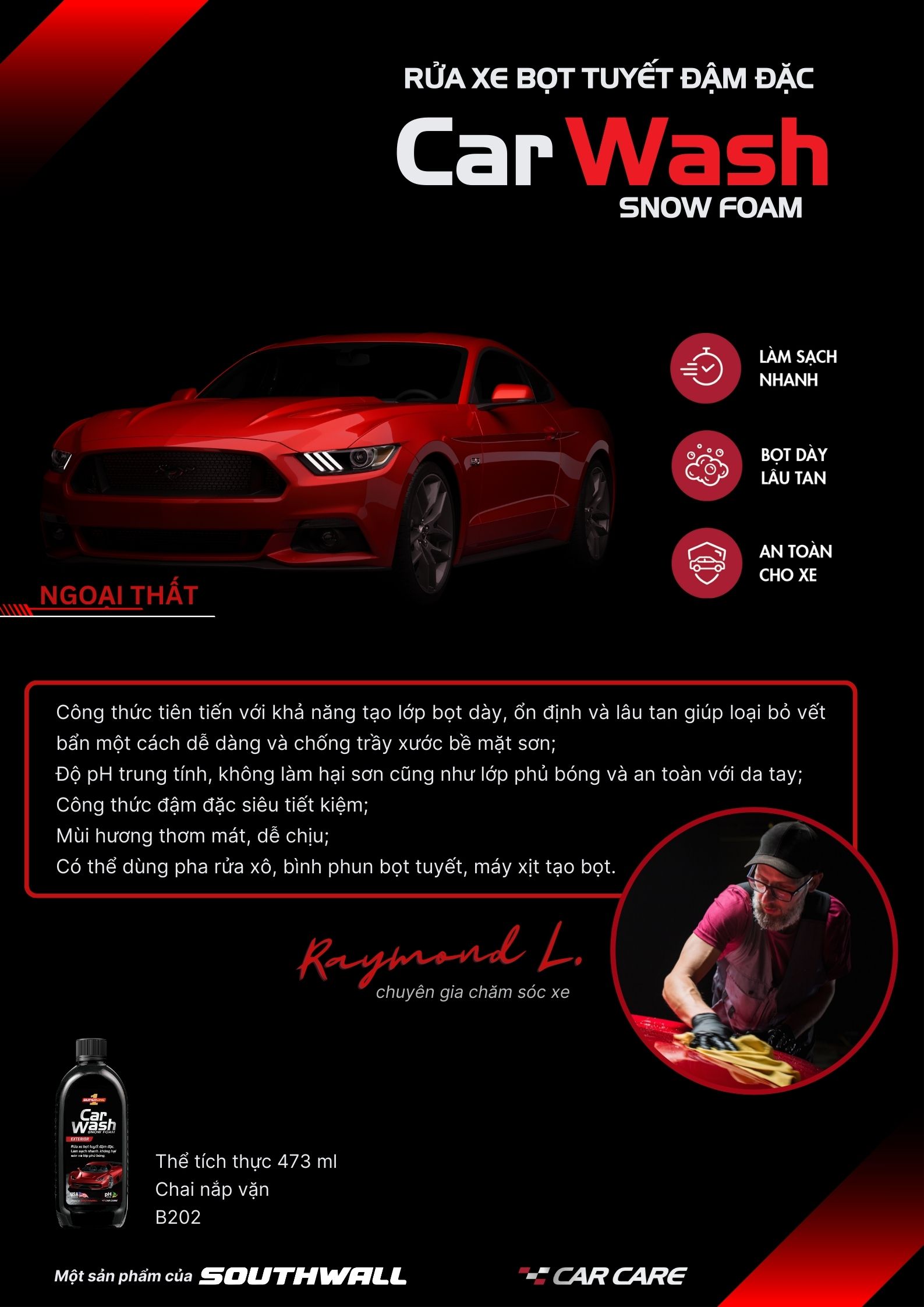 • Đặc Tính: Làm Sạch Nhanh – Bọt Dày Lâu Tan - An Toàn Cho Xe