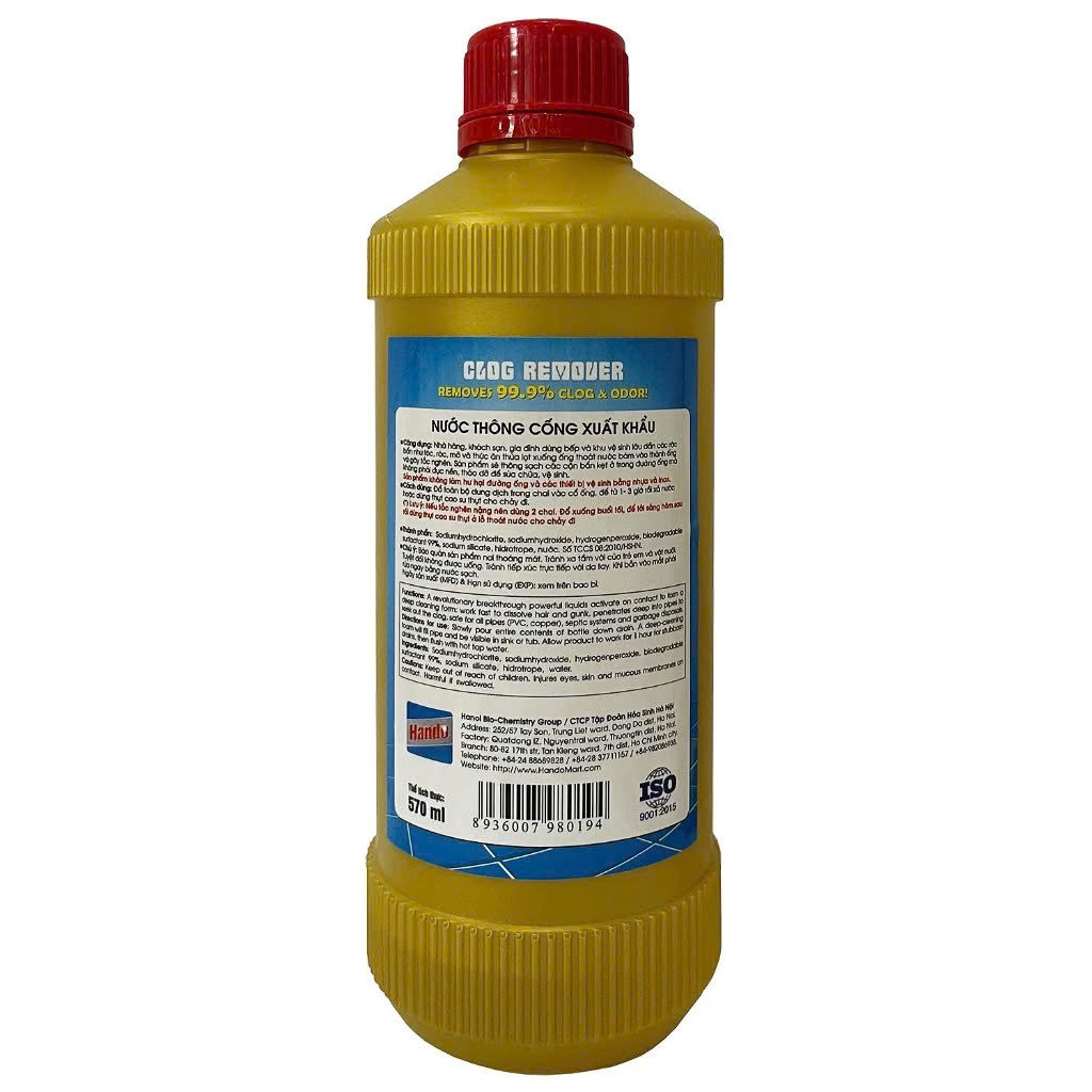Thông sạch các cặn bẩn kẹt trong đường ốngNước thông tắc đường ống thoát nước Hando 570ml xuất khẩu chứa các hoạt chất tẩy rửa tiên tiến có tác dụng tẩy sạch các vết bẩn cứng