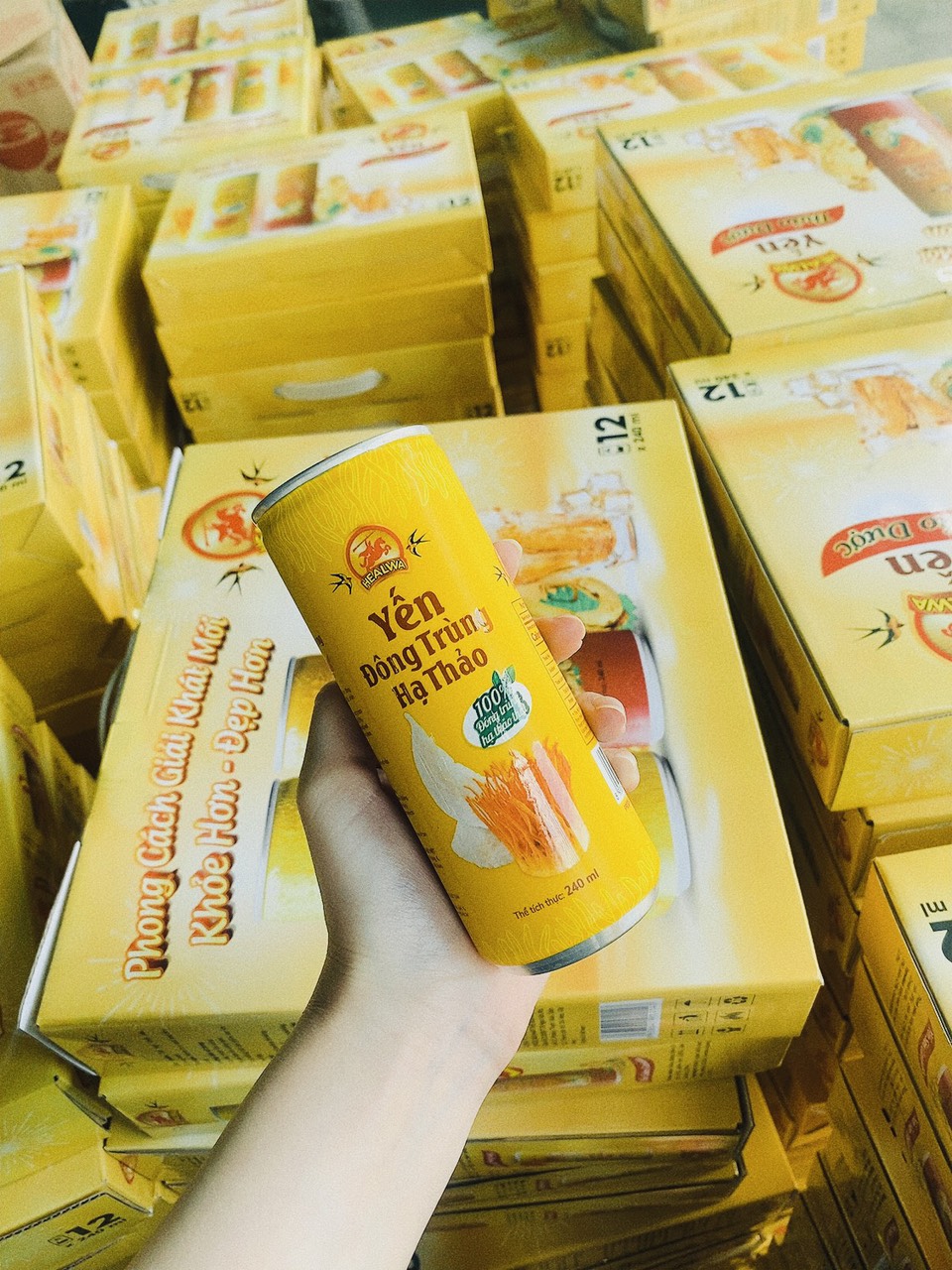 Thành phần Nước, tổ yến 18%, đường phèn, đông trùng hạ thảo, chất làm dày, chất ổn định, hương liệu dùng trong thực phẩm. Cách sử dụng Lắc đều trước khi uống, dùng ngon hơn