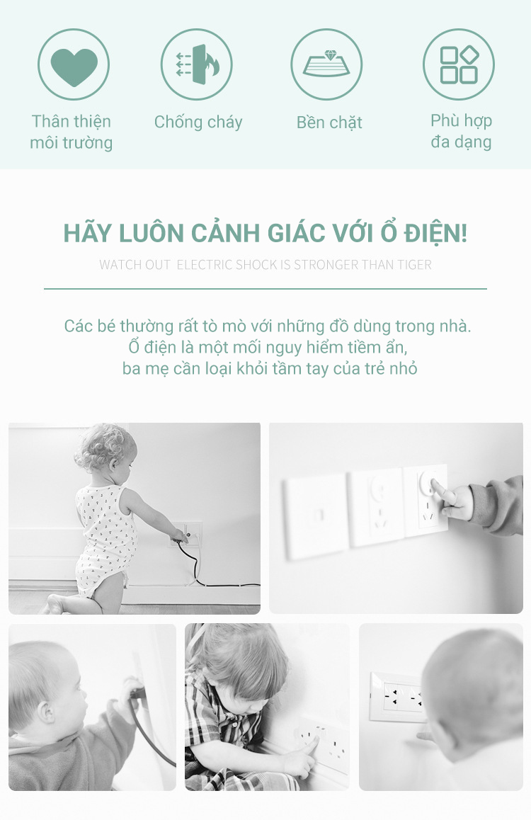 - Thiết kế bịt ổ điện trơn 1 màu giúp giảm sự chú ý của trẻ nhỏ Lưu ý: