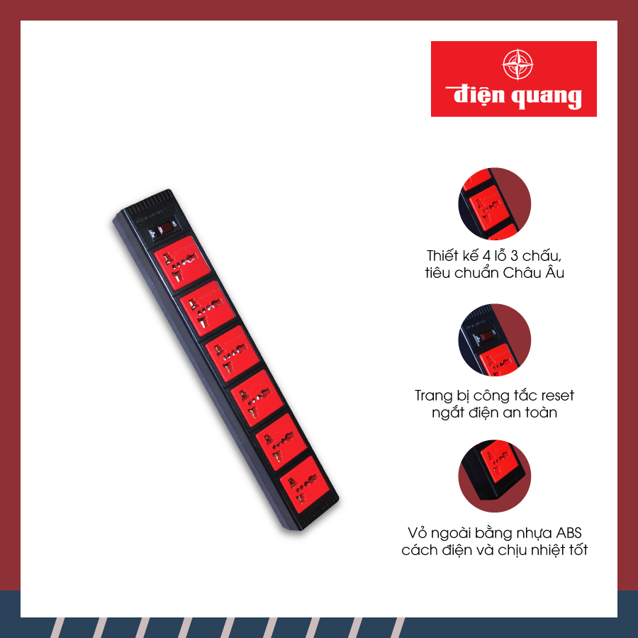 Ổ cắm Điện Quang ĐQ 001A-01 6 lỗ 2 chấu công suất 3200W