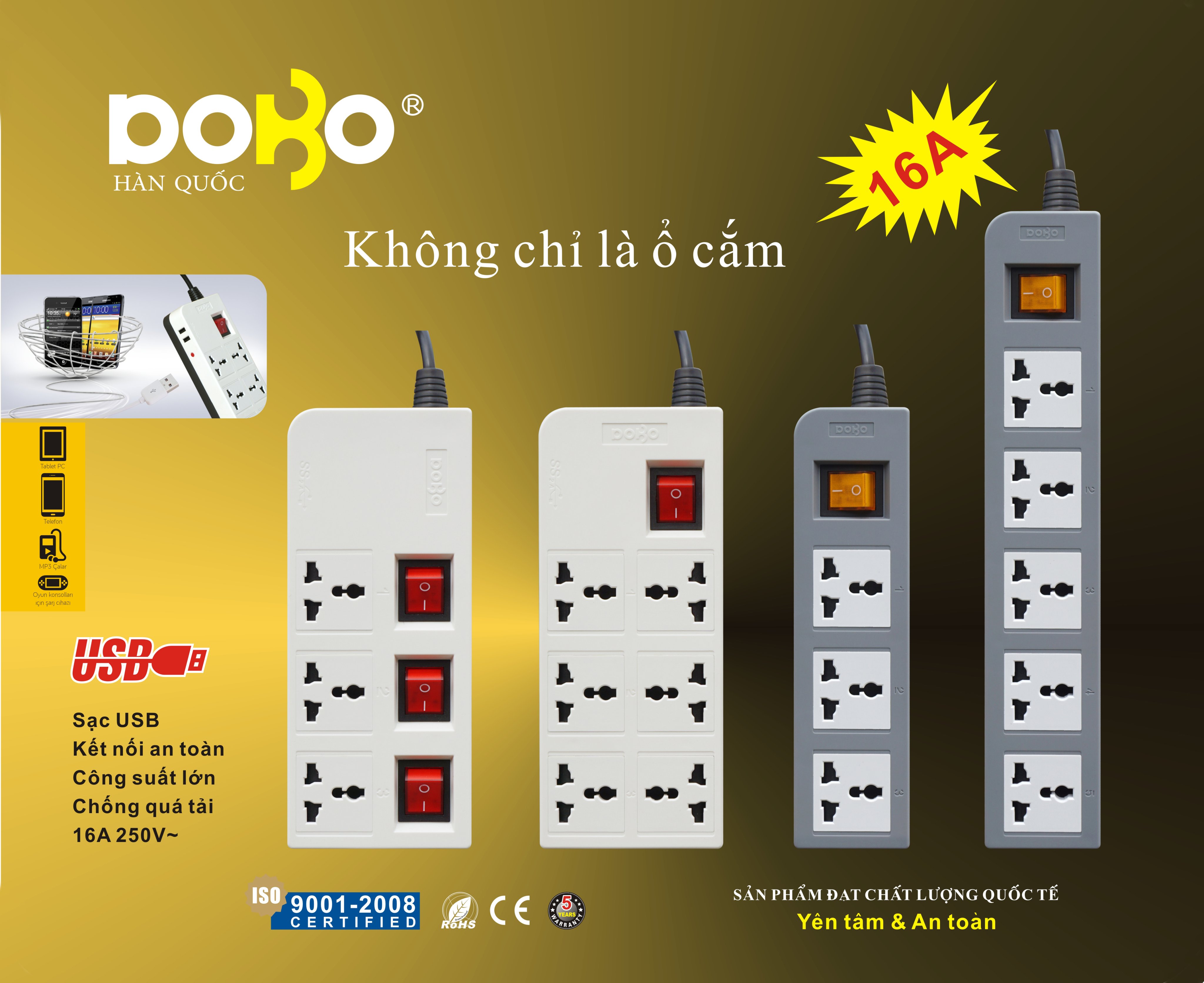 ✨Ổ Cắm Dài 6 Lỗ Kèm Cổng USB Dobo Electric Korea (16A - 3m) - Trắng