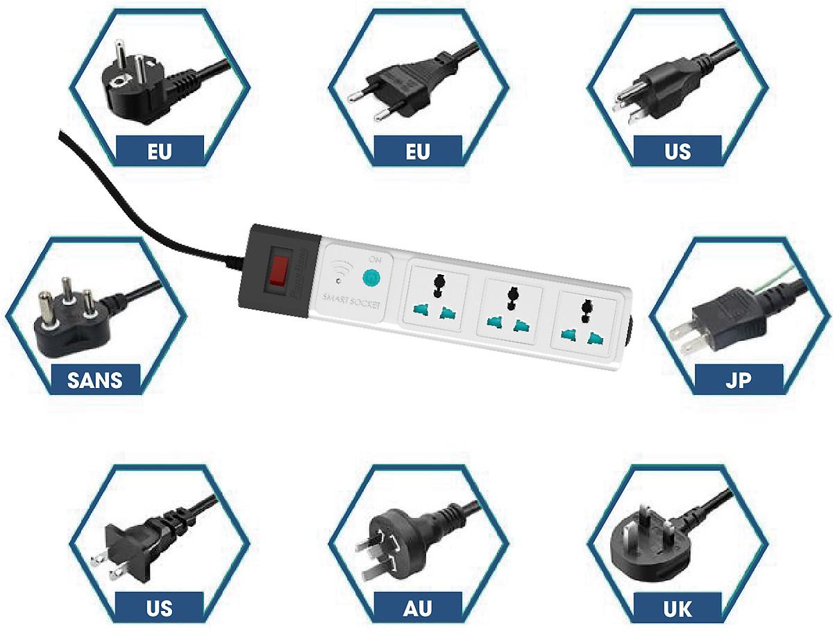 - Mặt ổ cắm đa năng, phù hợp với hầu hết các loại phích cắm.