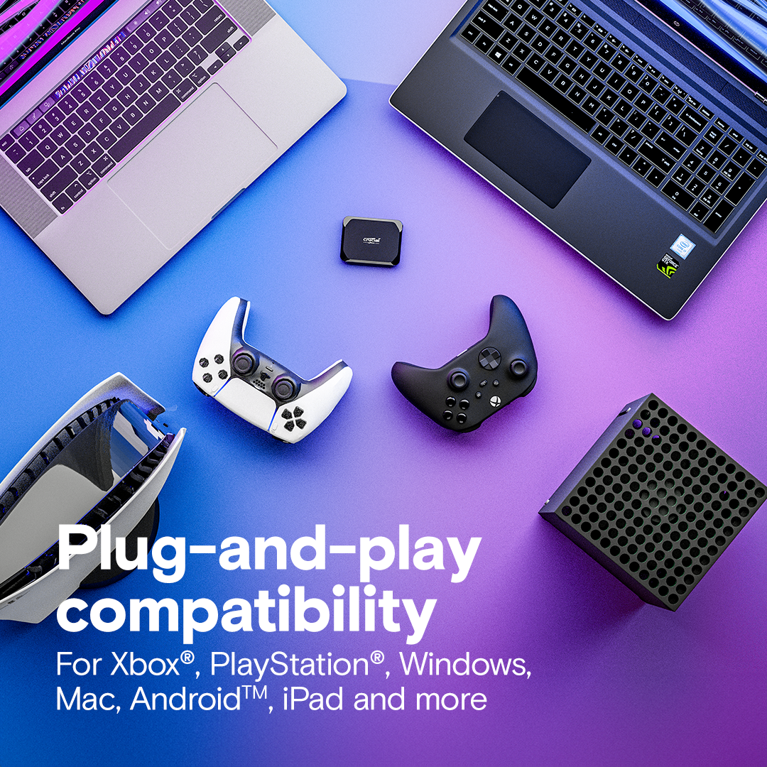 SSD di động Crucial X9  Lưu trữ đáng tin cậy cho các thiết bị yêu thích của bạn, mọi lúc mọi nơi — đó là những gì SSD di động Crucial X9 cung cấp. Với